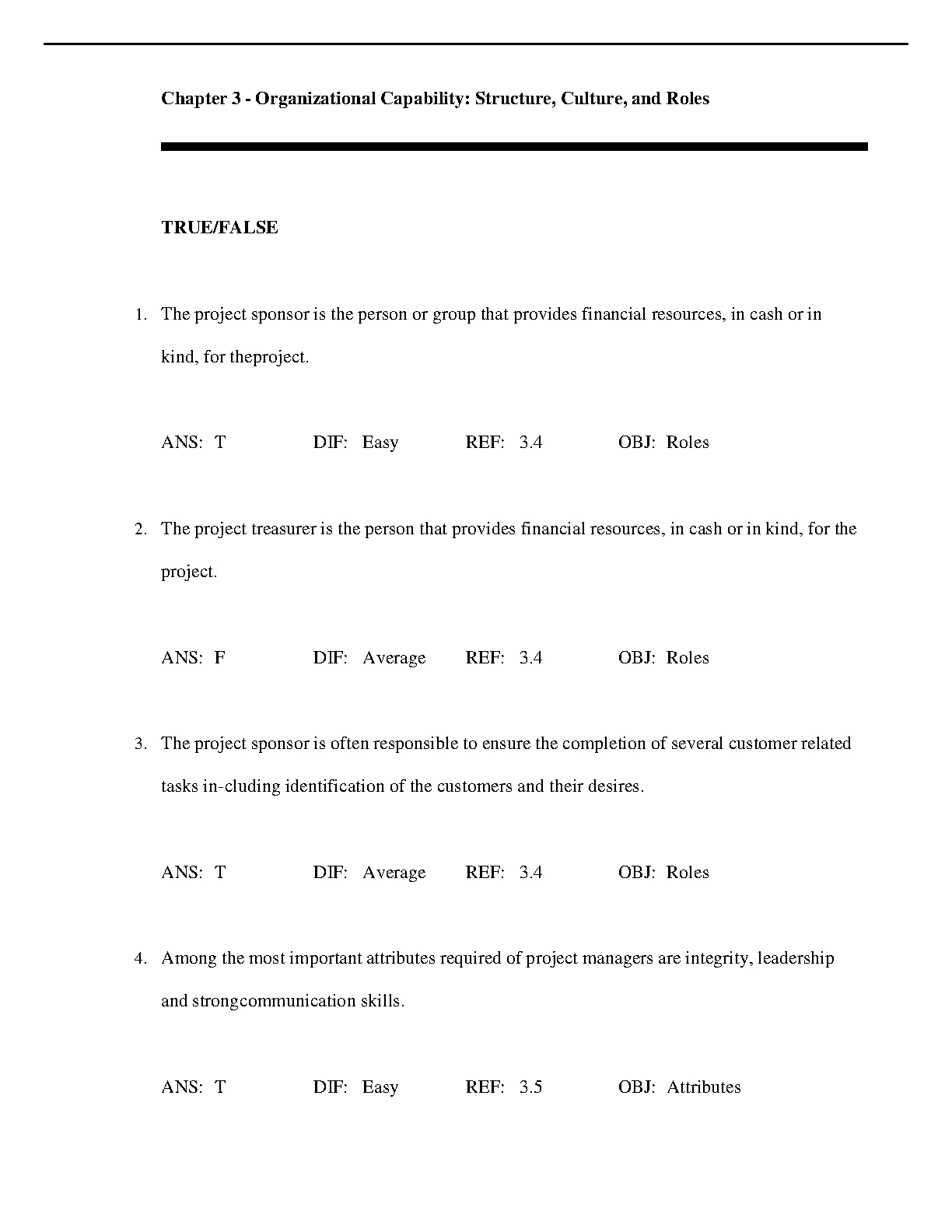 TEST BANK FOR PROJECT MANAGEMENT (Chapter 3 Organizational Capability: Structure, Culture, and Roles)