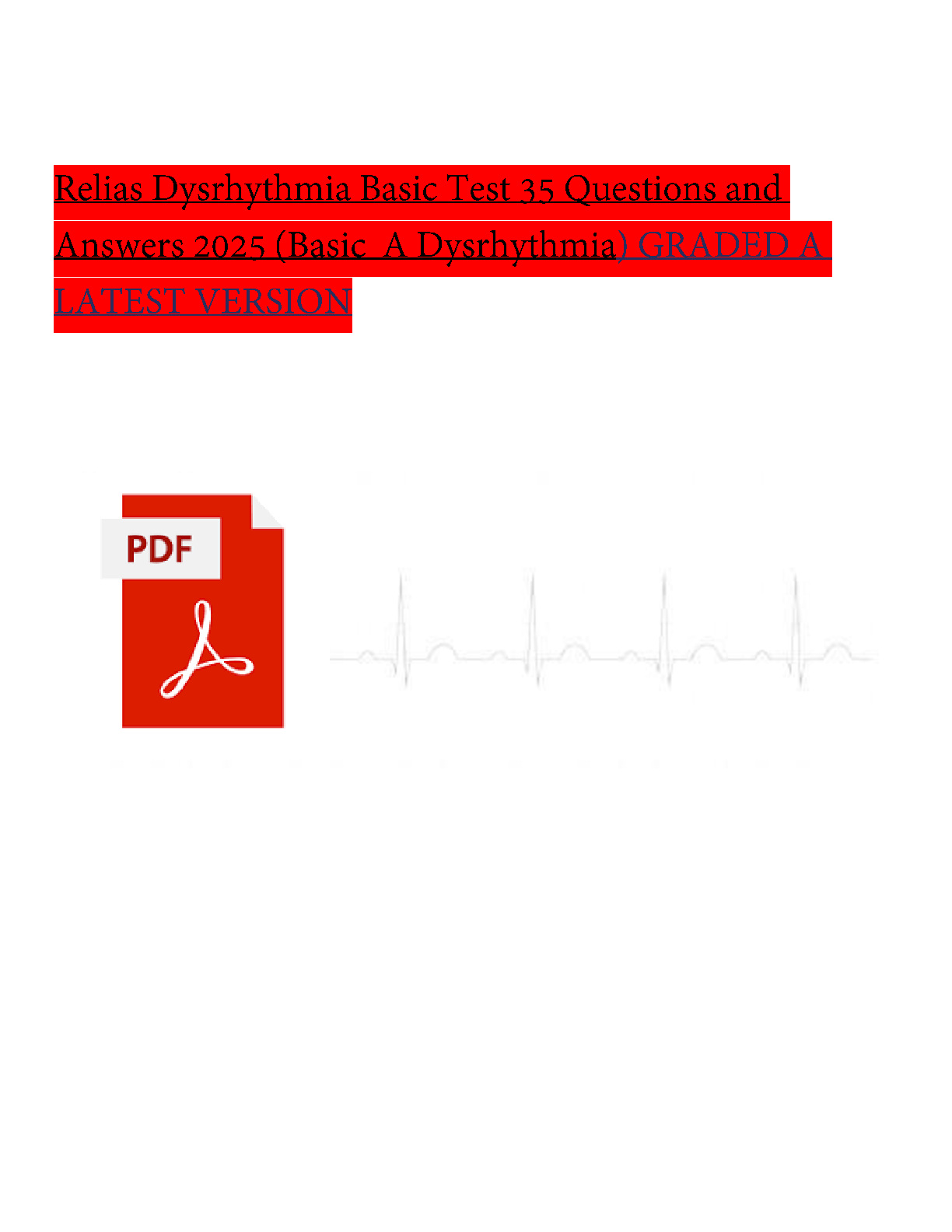 Pass Your Relias Dysrhythmia Basic A Test (2025) First Try: Graded A Questions & Answers