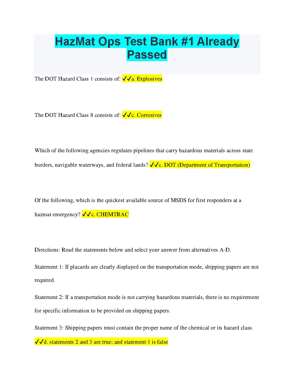 Test Bank For HazMat Ops #1. LATEST UPDATED VERSION 2023. DOWNLOAD on www.hackedexams.com INSTANTLY.