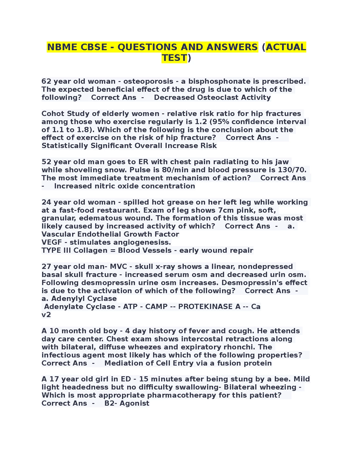 TEST BANK FOR NBME CBSE QUESTIONS AND ANSWERS (ACTUAL TEST) 2023. DOWNLOAD on www.hackedexams.com INSTANTLY.