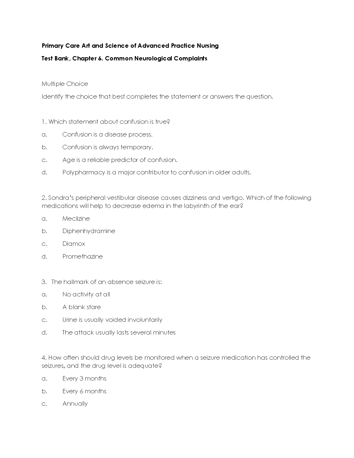 Test Bank For Primary Care Art and Science of Advanced Practice Nursing, Chapter 6. Common Neurological Complaints. DOWNLOAD on www.hackedexams.com INSTANTLY.