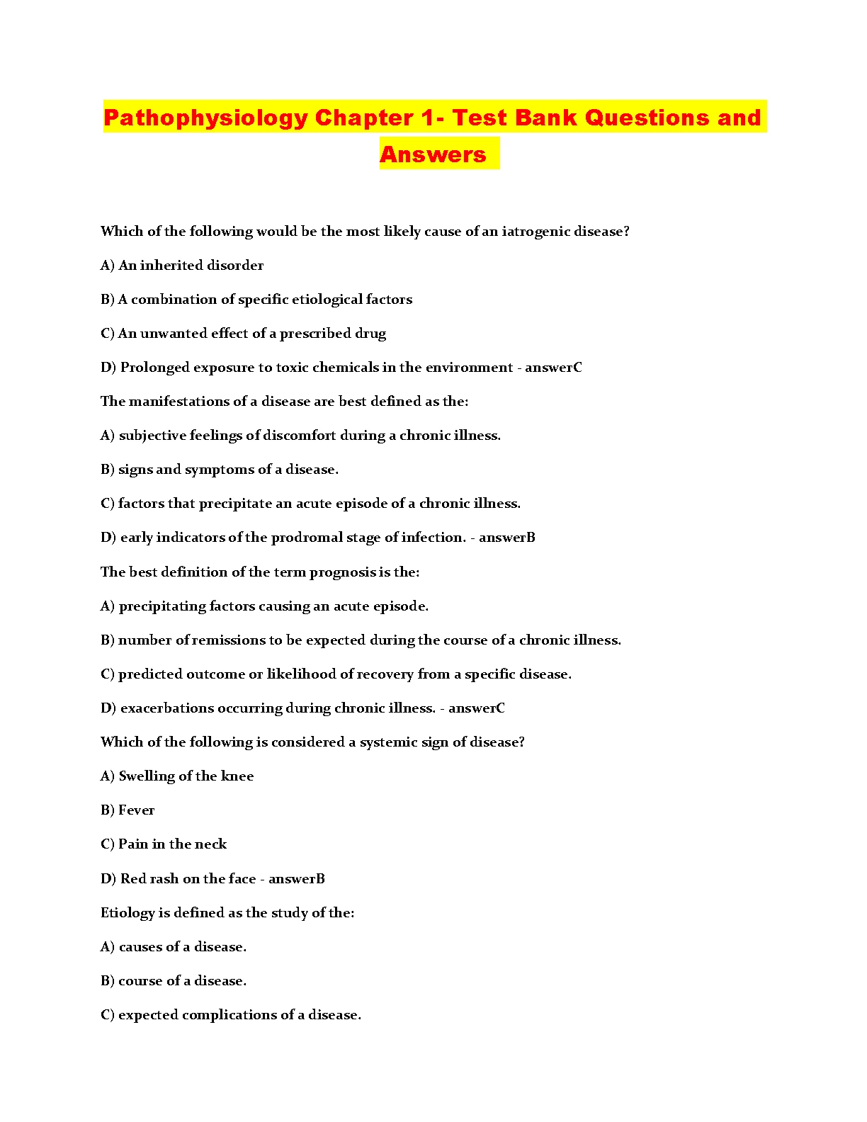 Test Bank For Pathophysiology Chapter 1 Questions and Answers. GRADED A+