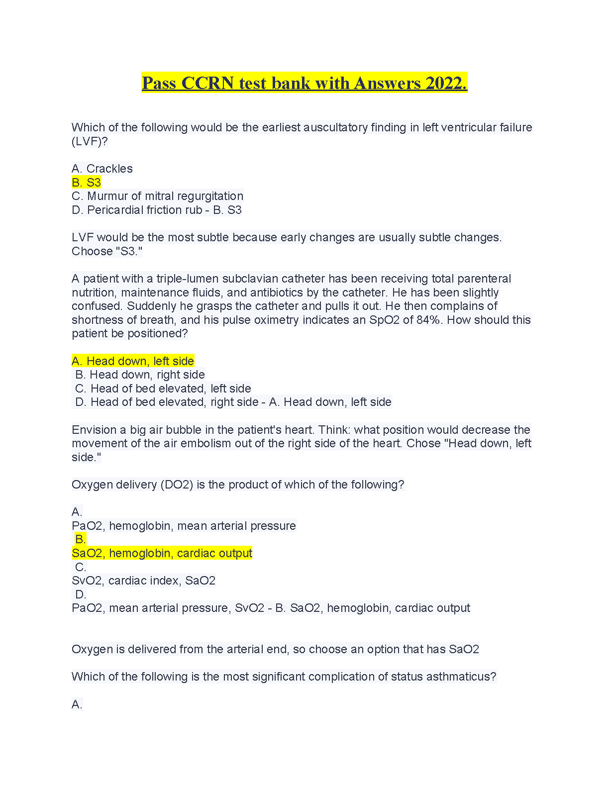 TEST BANK FOR PASS CCRN. QUESTIONS AND ANSWERS. GRADED A+