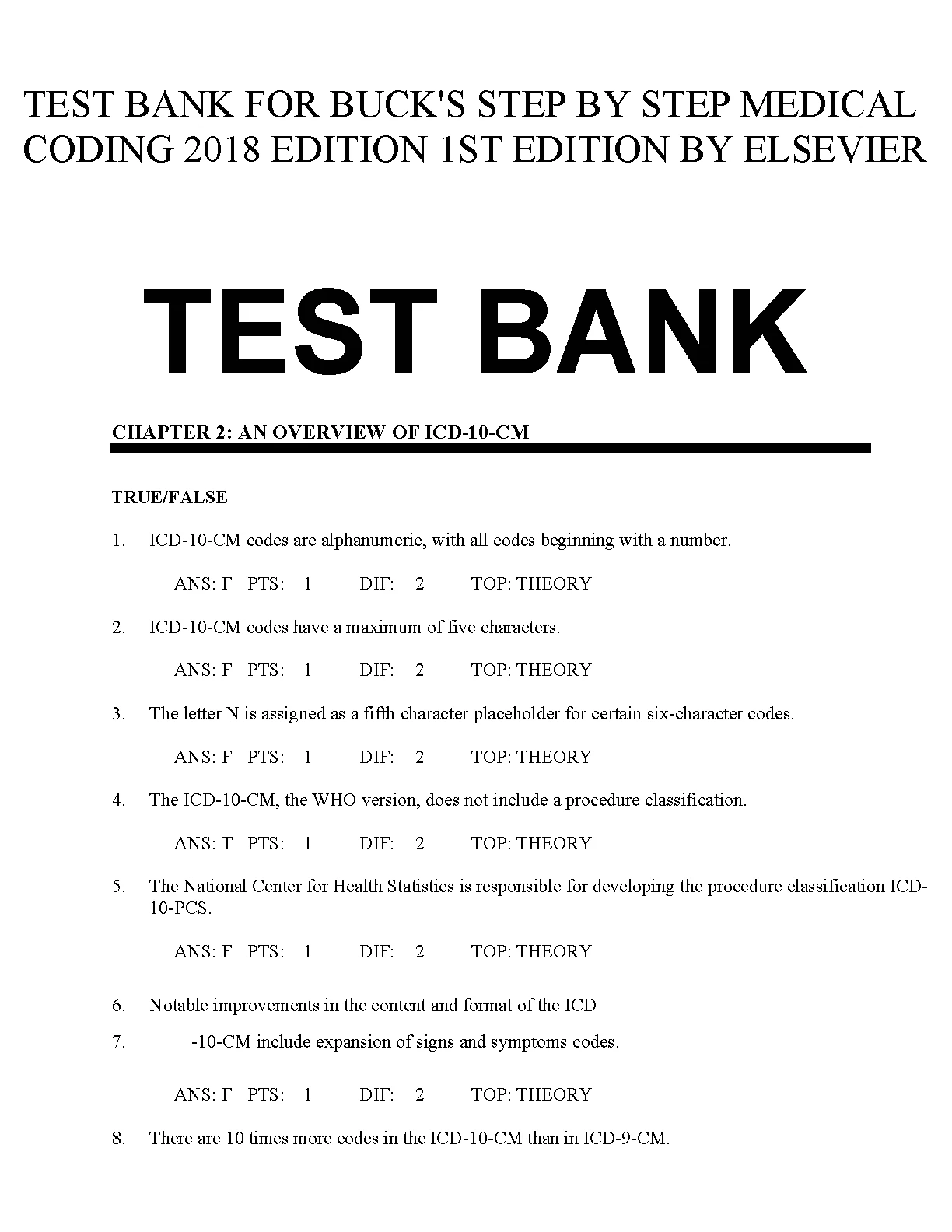 TEST BANK FOR BUCK'S STEP BY STEP MEDICAL CODING EDITION 1ST EDITION BY ELSEVIER