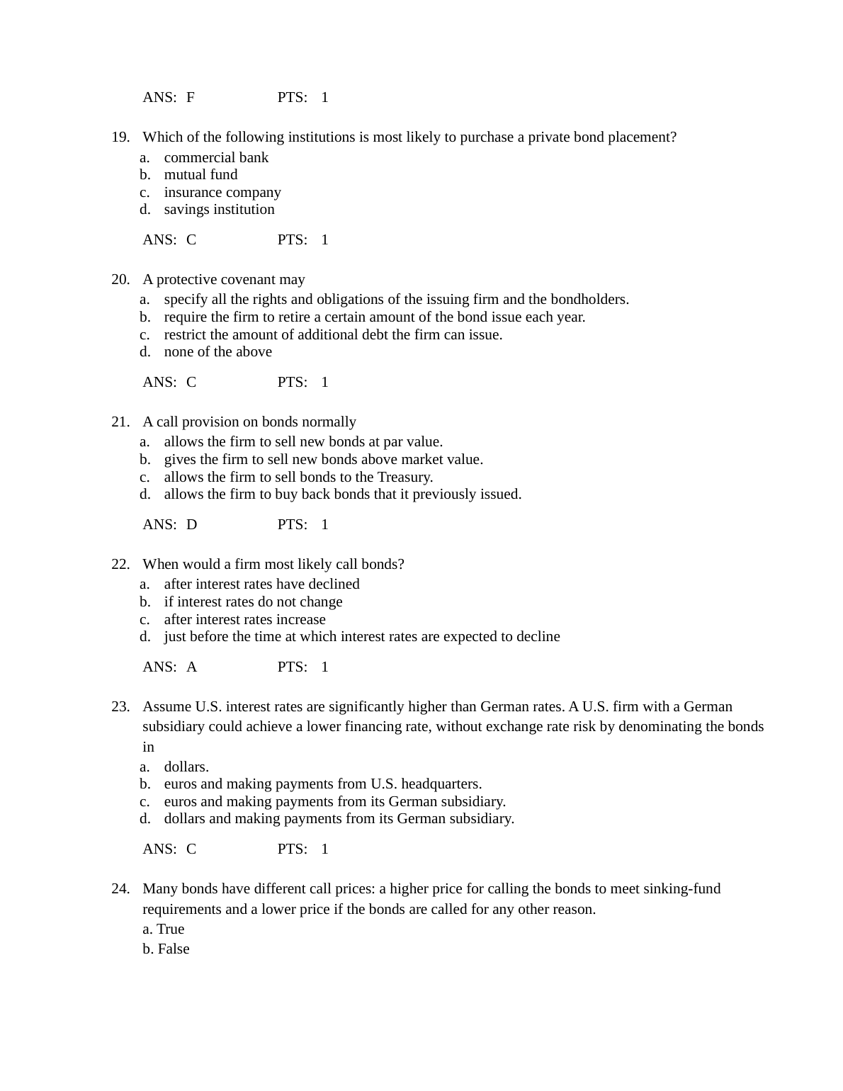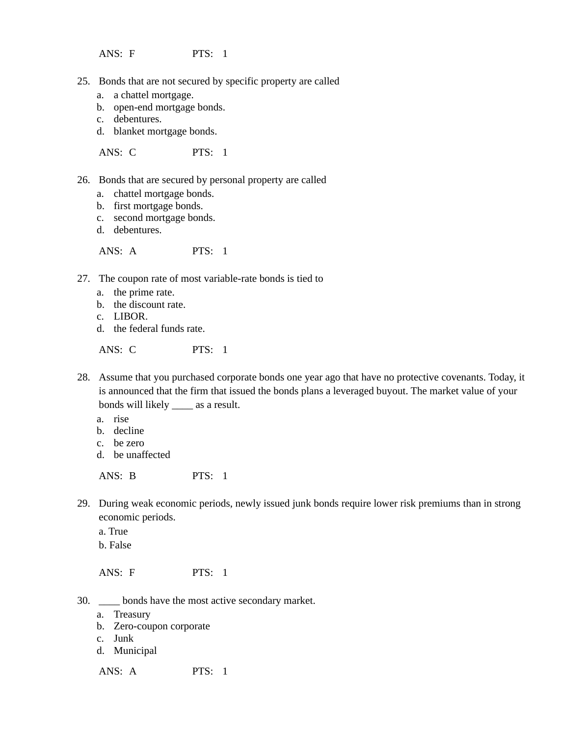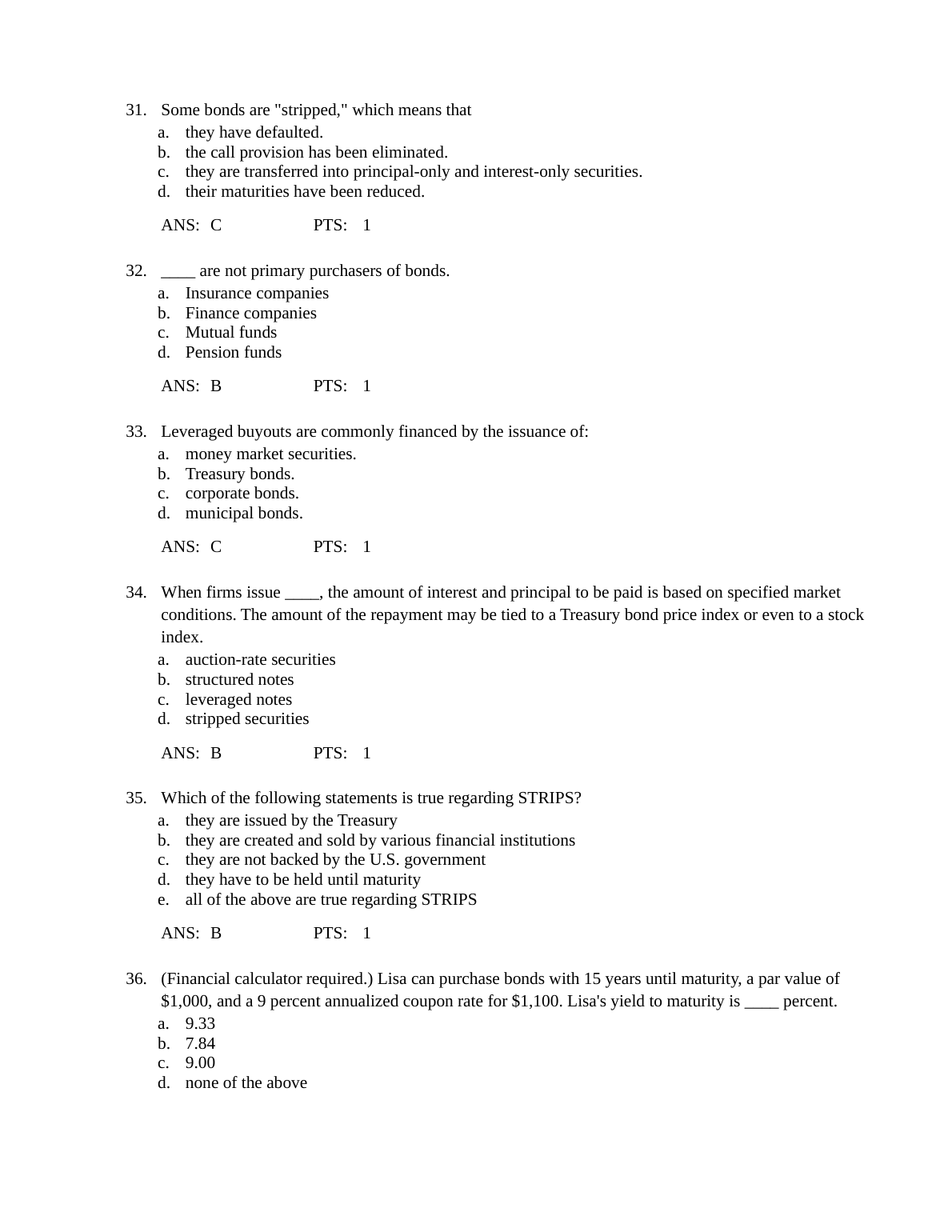 Test Bank For Chapter 7 Bond Markets