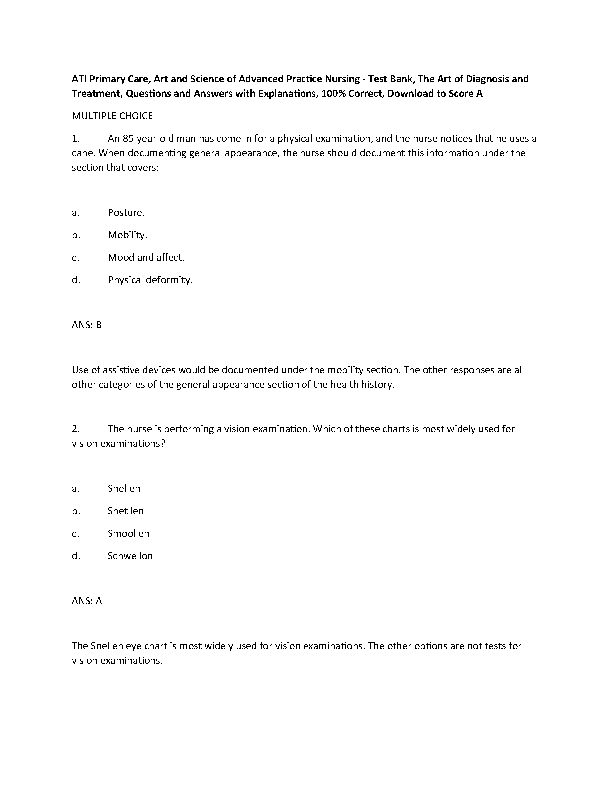 TEST BANK FOR ATI Primary Care, Art and Science of Advanced Practice Nursing, The Art of Diagnosis and Treatment, Questions and Answers with Explanations. DOWNLOAD on www.hackedexams.com INSTANTLY.