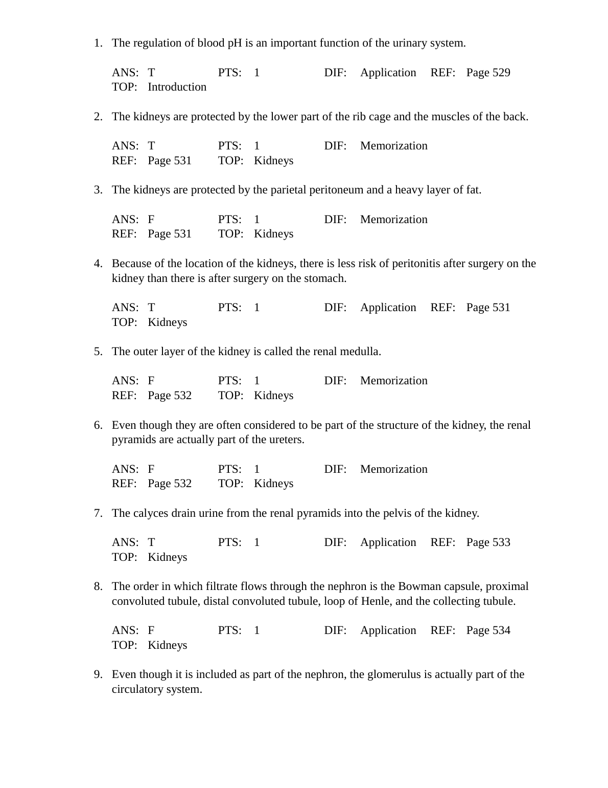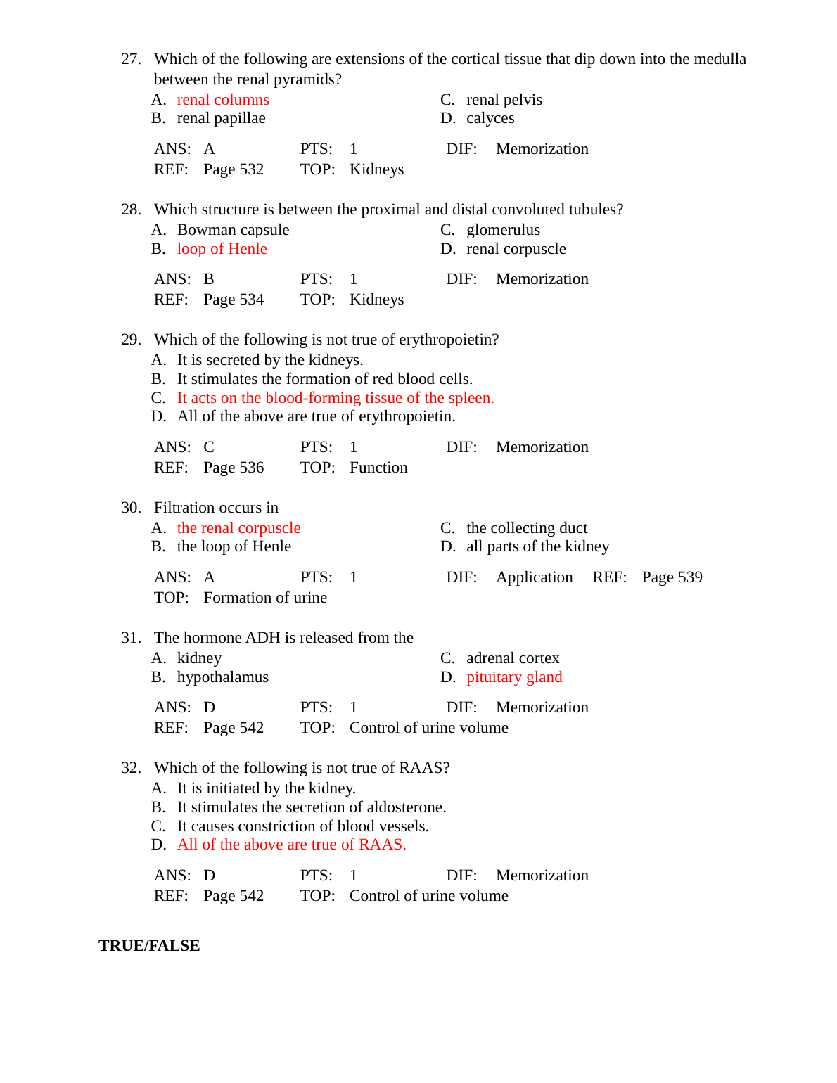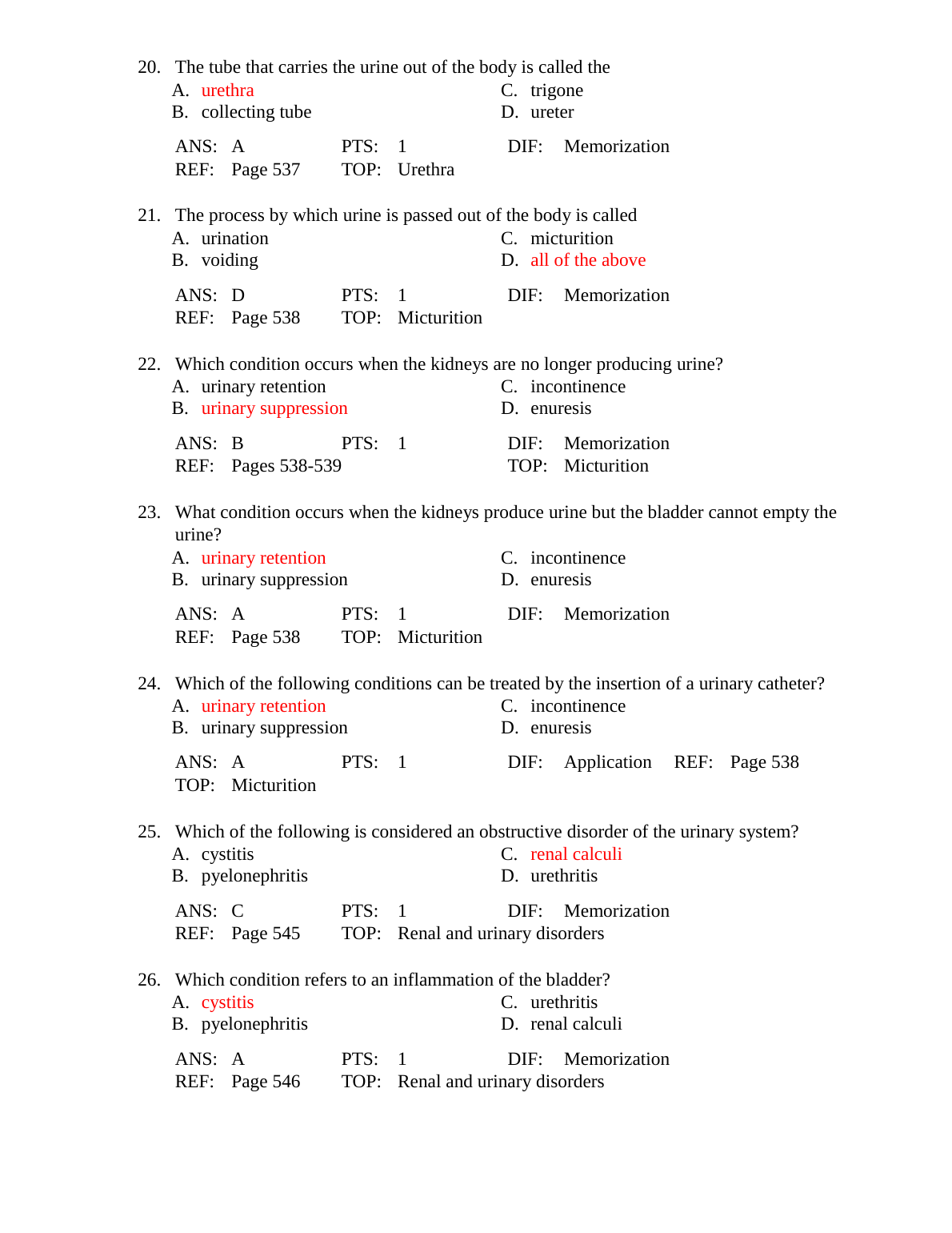 Test Bank For Chapter 20: The Urinary System