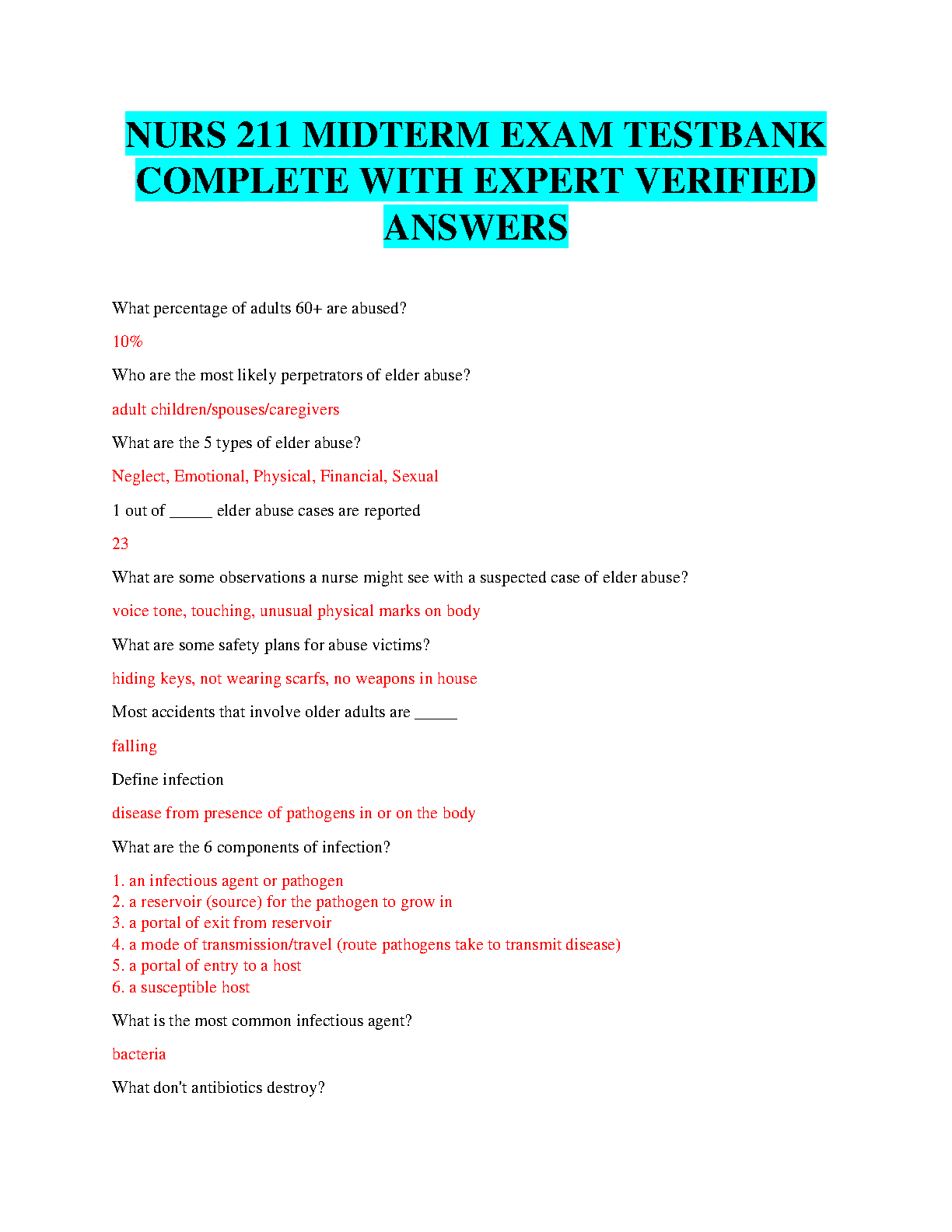 TEST BANK FOR NURS 211 MIDTERM EXAM COMPLETE WITH VERIFIED ANSWERS