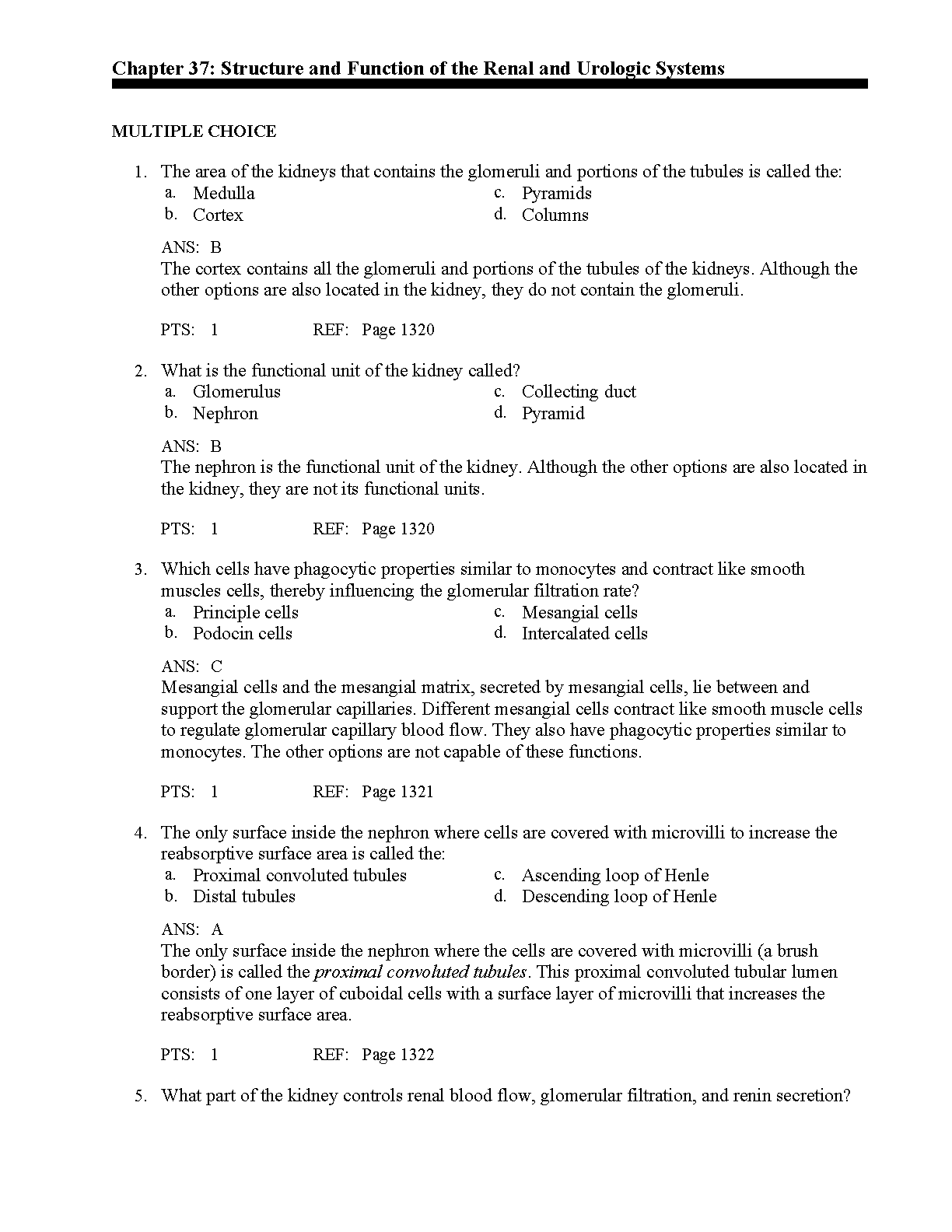 Test Bank For Chapter 37: Structure and Function of the Renal and Urologic Systems
