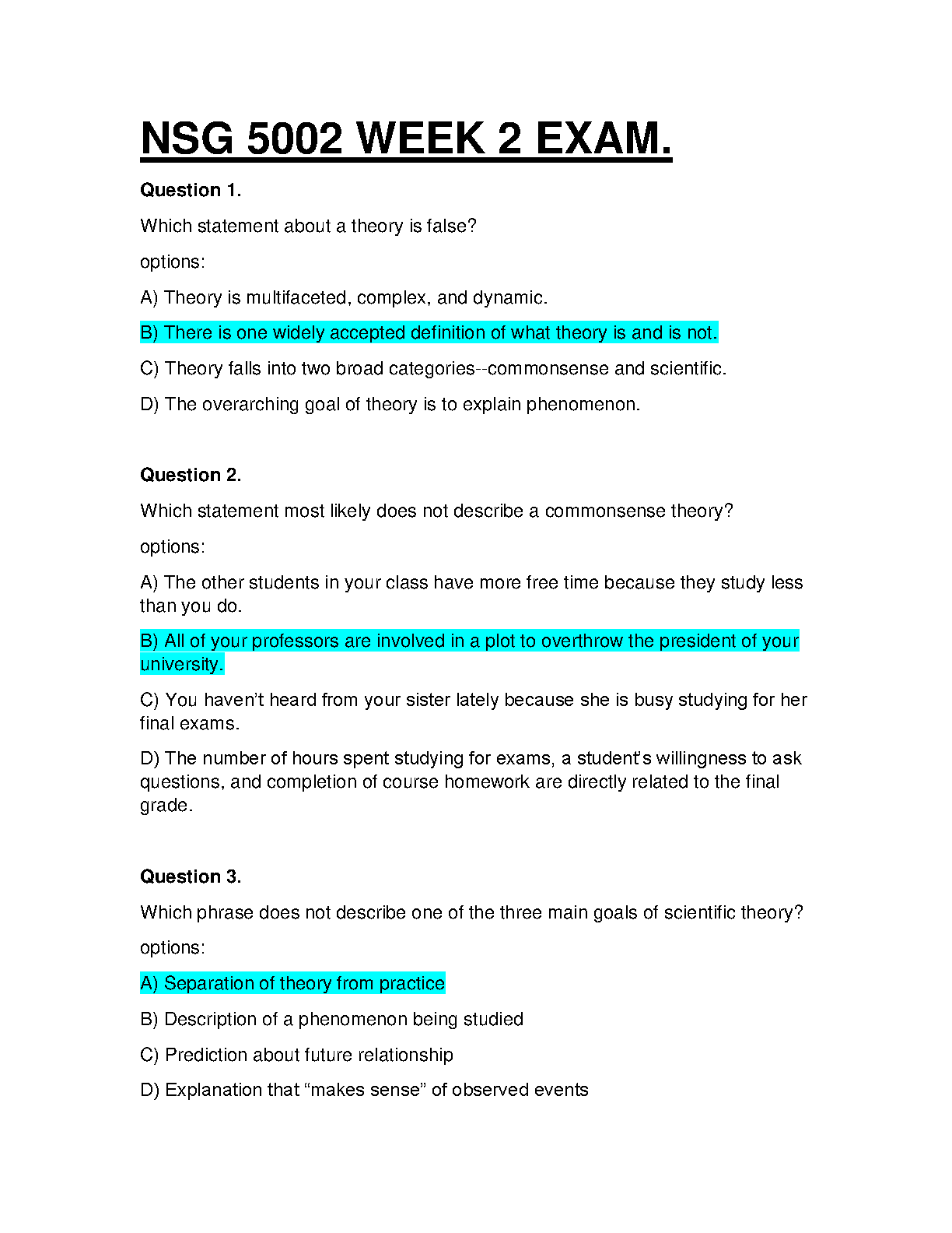 NSG 5002 WEEK 2 EXAM. QUESTIONS AND ANSWERS