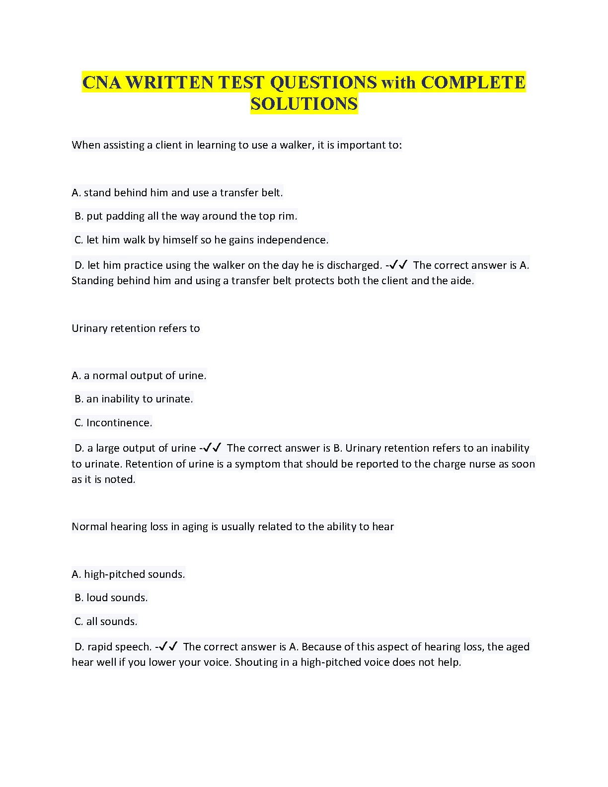 CNA WRITTEN TEST QUESTIONS with COMPLETE SOLUTIONS 2023/2024. DOWNLOAD on www.hackedexams.com INSTANTLY.