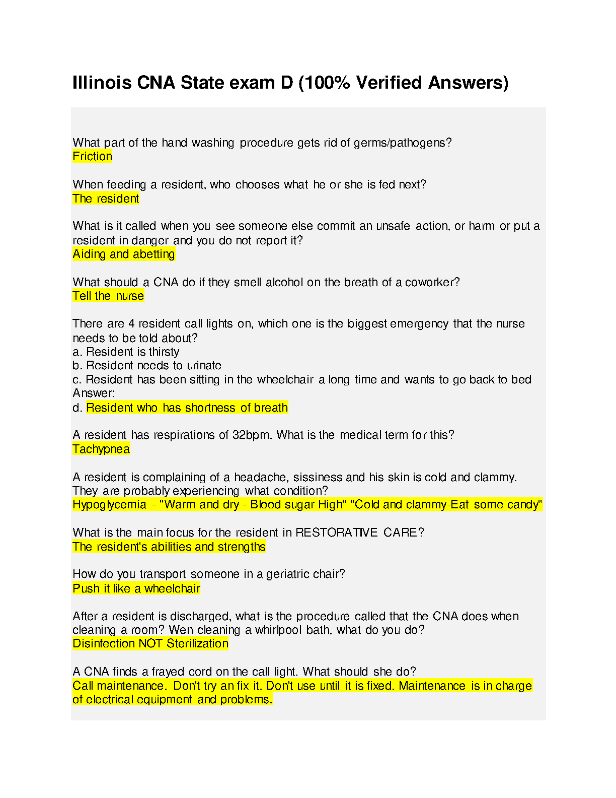 Illinois CNA State exam D. Questions With 100% Verified Answers. DOWNLOAD on www.hackedexams.com INSTANTLY.