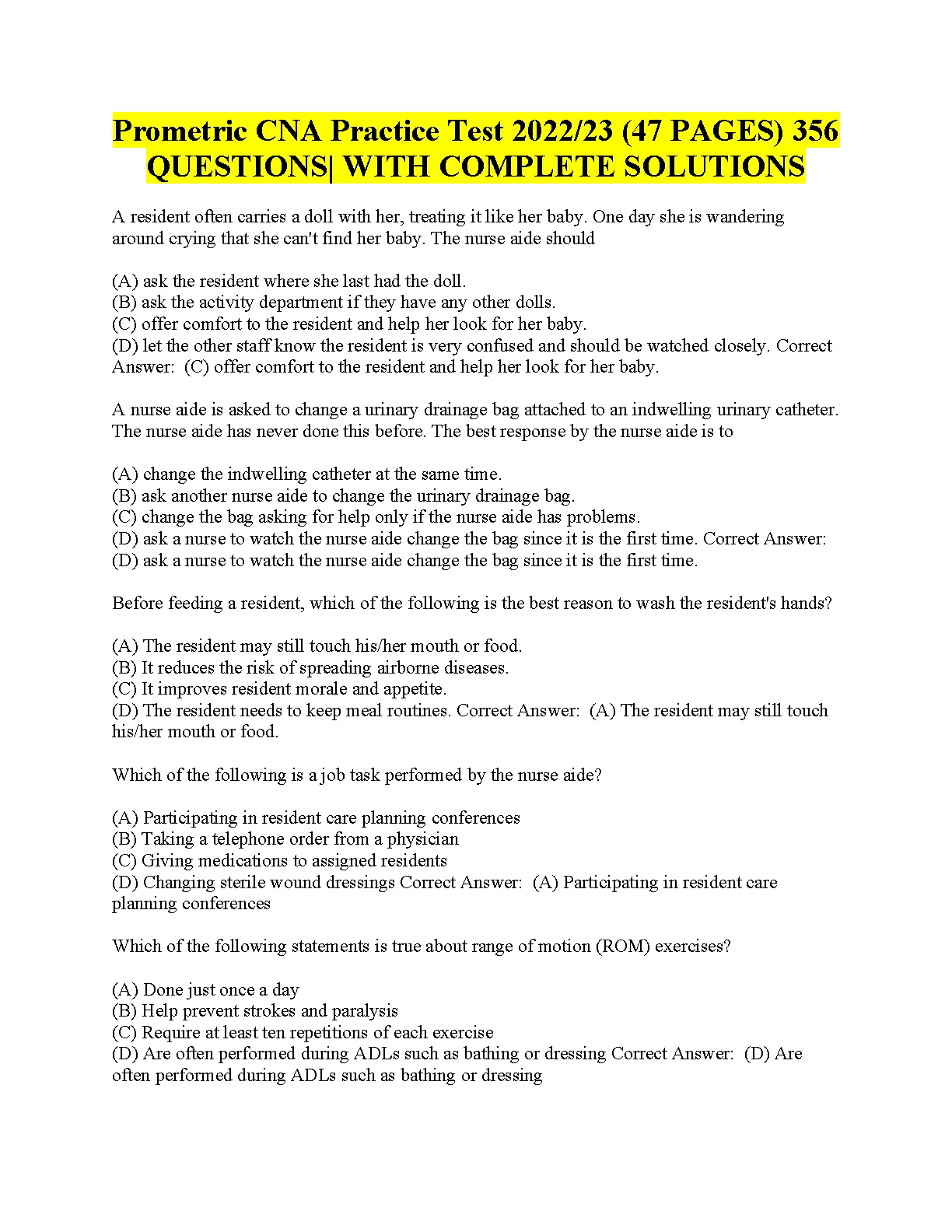 Prometric CNA Practice Test. MOST RECENT WITH 100% SOLUTIONS 2023