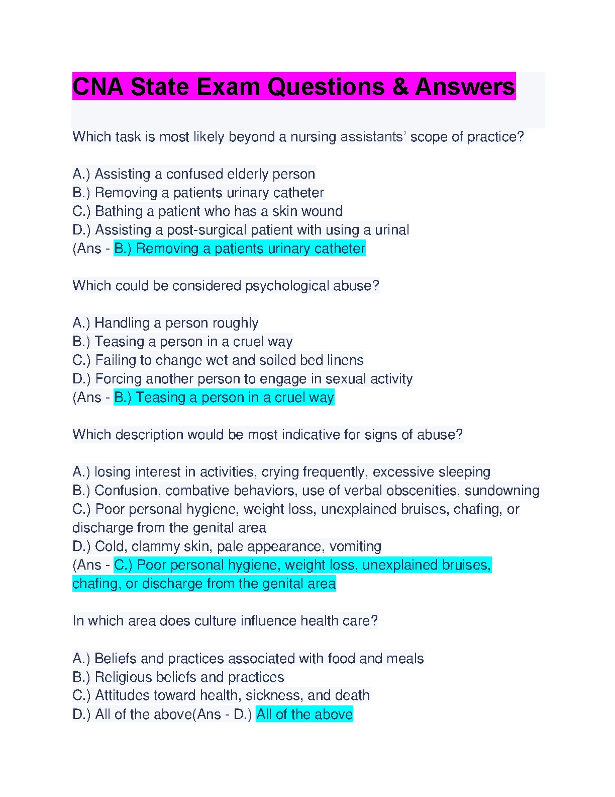 CNA State Exam Questions & Answers 2023/2024. GUARANTEED PASS. DOWNLOAD on www.hackedexams.com INSTANTLY.
