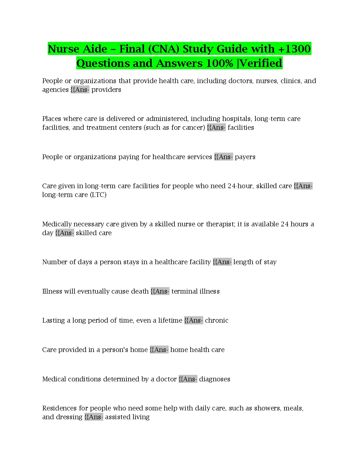 Nurse Aide. Final (CNA) Study Guide with Questions and Answers 2023/2024. DOWNLOAD on www.hackedexams.com INSTANTLY.