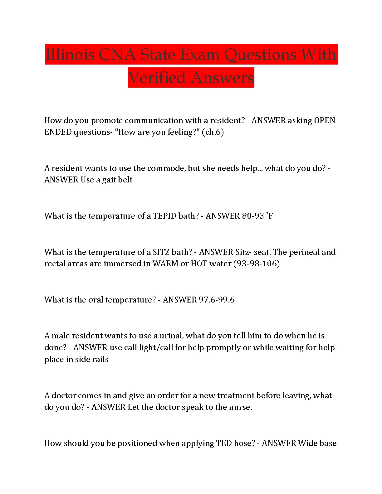 Illinois CNA State Exam Questions With Verified Answers 2023/2024