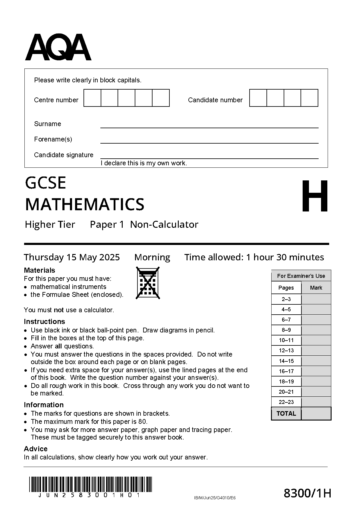 AQA GCSE MATHEMATICS PAPER 1 2025