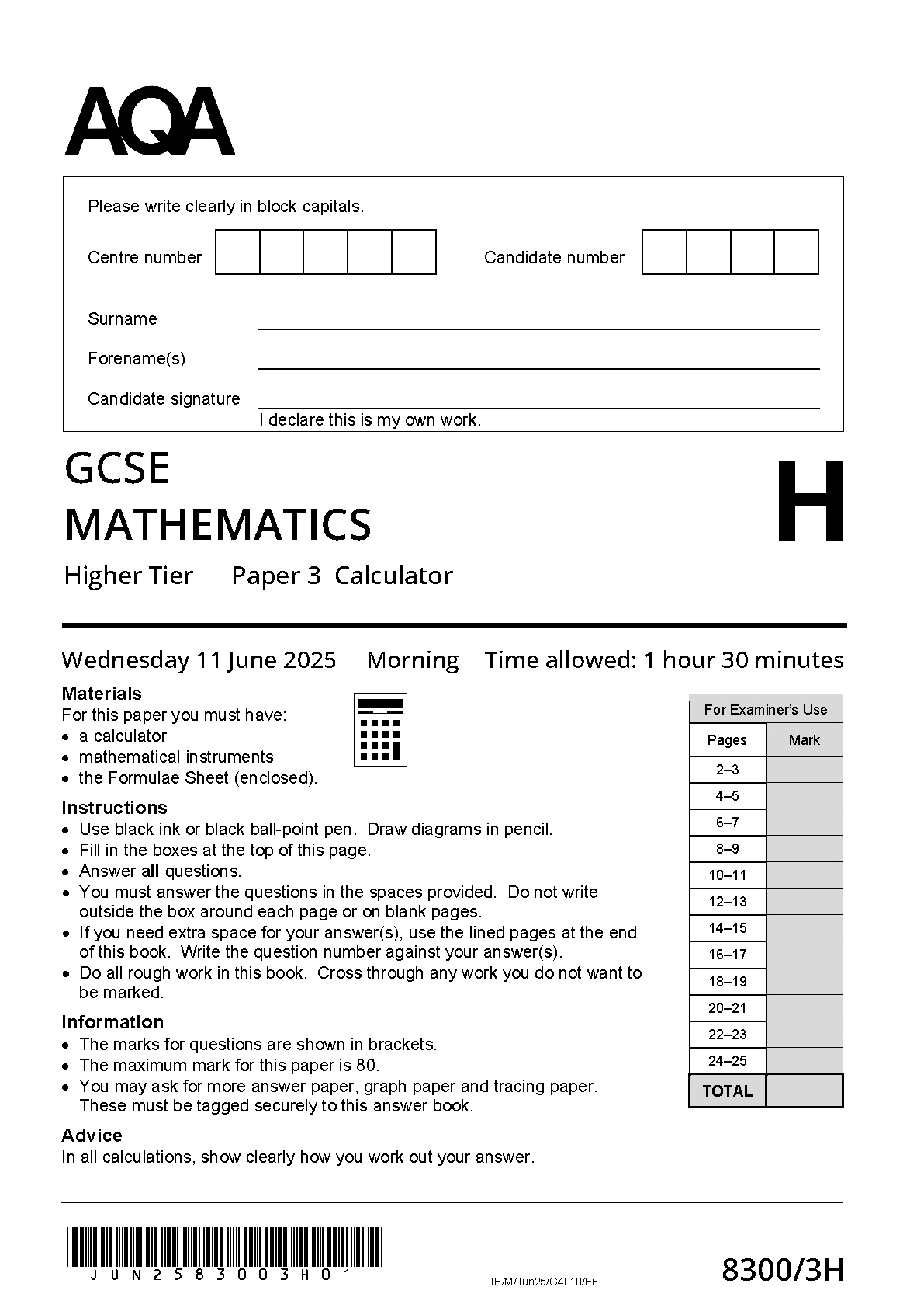 AQA GCSE MATHEMATICS PAPER 3 2025 (8300/3H: Higher Tier - Calculator). DOWNLOAD this verified paper on www.hackedexams.com and access the PDF INSTANTLY!!!