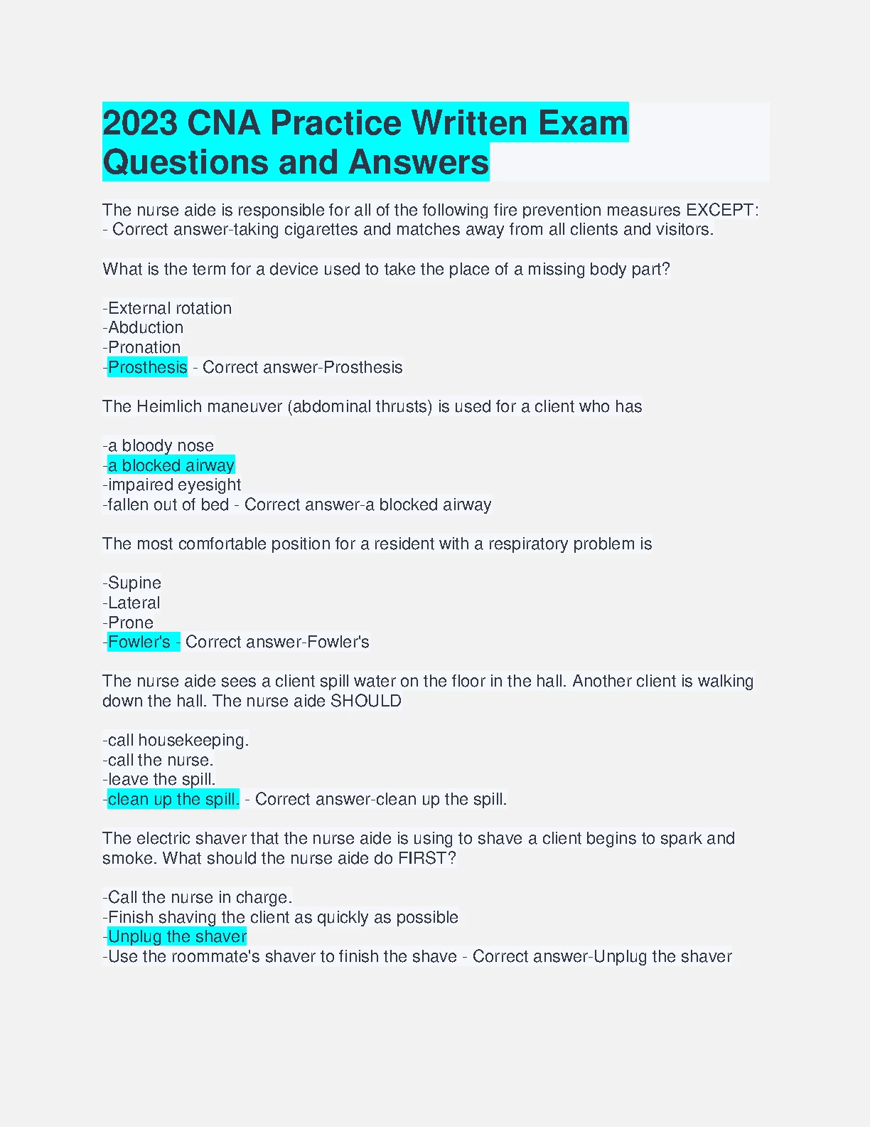 CNA Practice Written Exam Questions and Answers 2023/2024