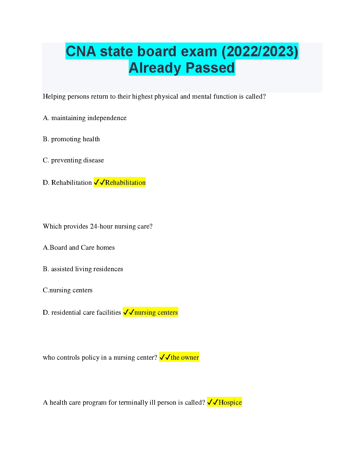 CNA STATE BOARD EXAM. QUESTIONS WITH 100% VERIFIED ANSWERS. DOWNLOAD on www.hackedexams.com INSTANTLY.