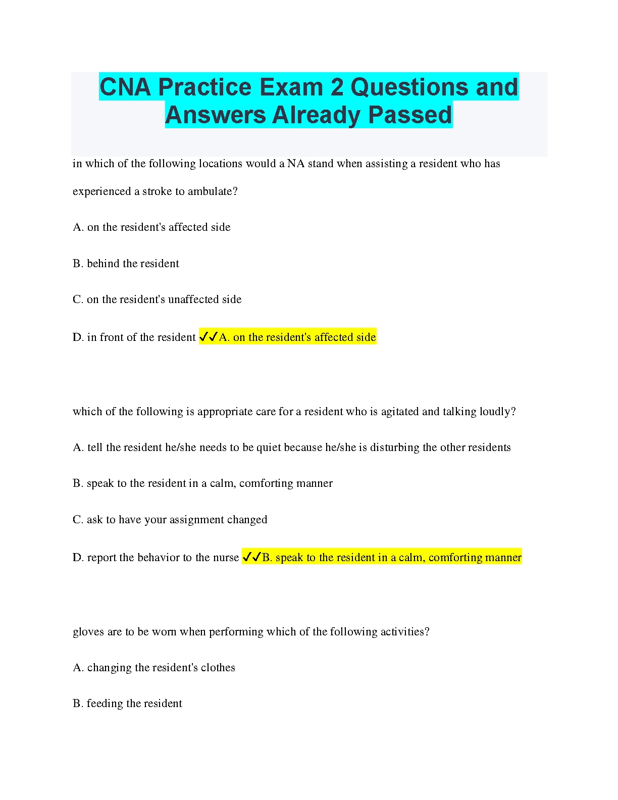 CNA Practice Exam 2 Questions and Answers. GRADED A+. DOWNLOAD on www.hackedexams.com INSTANTLY.