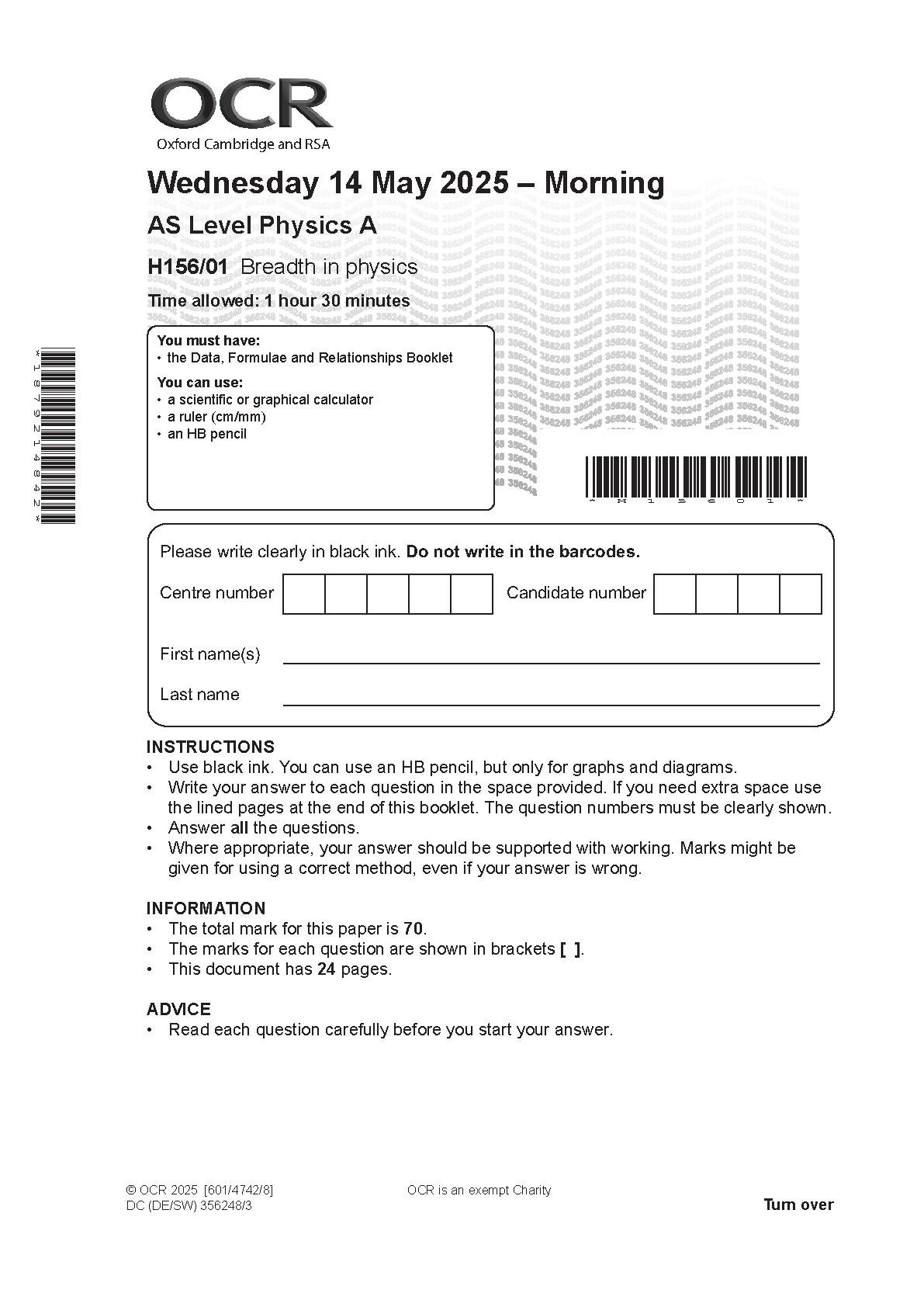 OCR AS PHYSICS A PAPER 1 2025 (H156/01: Breadth in physics). DOWNLOAD this verified paper on www.hackedexams.com and access the PDF INSTANTLY!!!