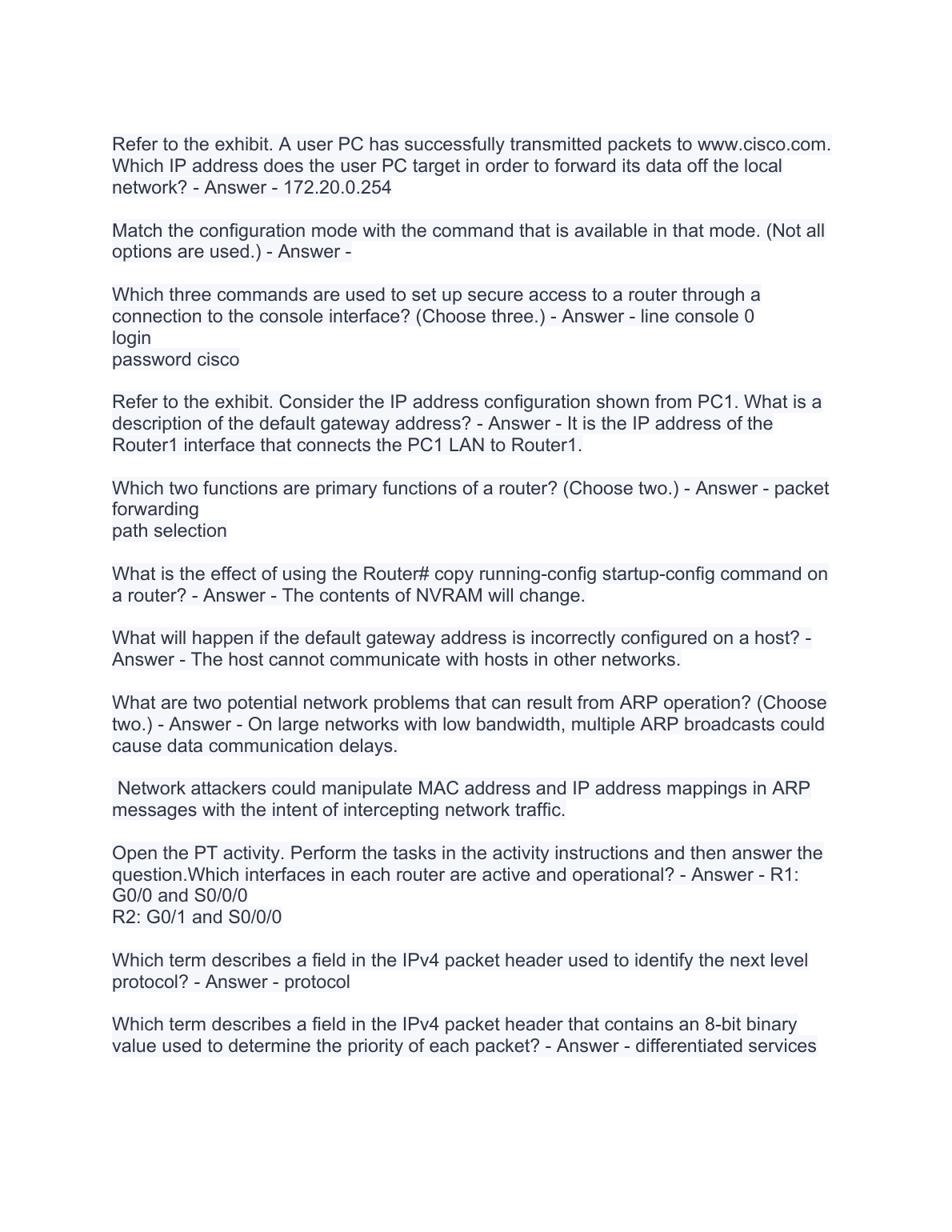 CCNA 1 v7 (Modules 8 - 10): Communicating Between Networks Exam 2023/2024. DOWNLOAD on www.hackedexams.com INSTANTLY.
