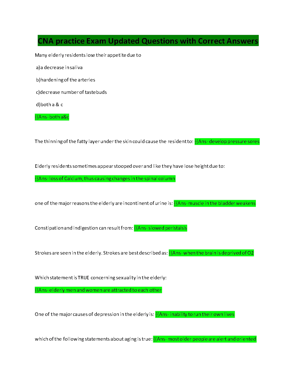 CNA practice Exam Updated Questions with Correct Answers 2023/2024