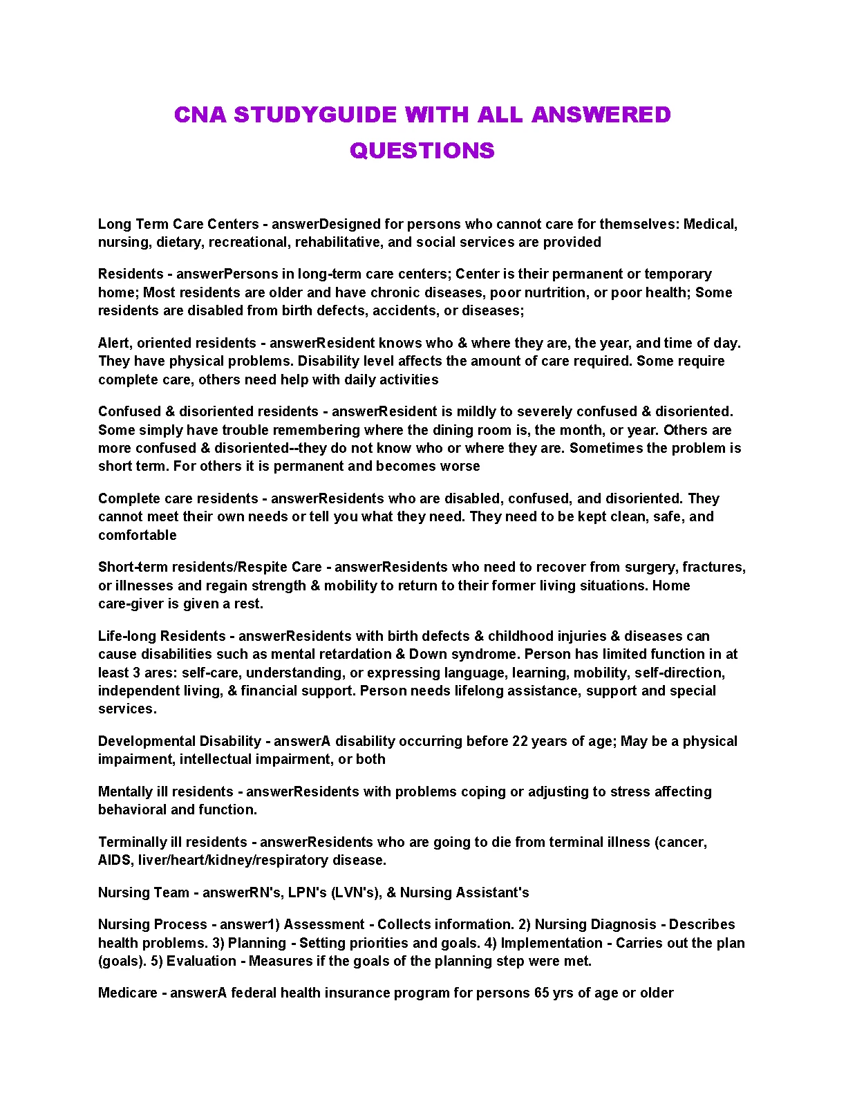 CNA STUDYGUIDE WITH QUESTIONS AND 100% VERIFIED ANSWERS 2023
