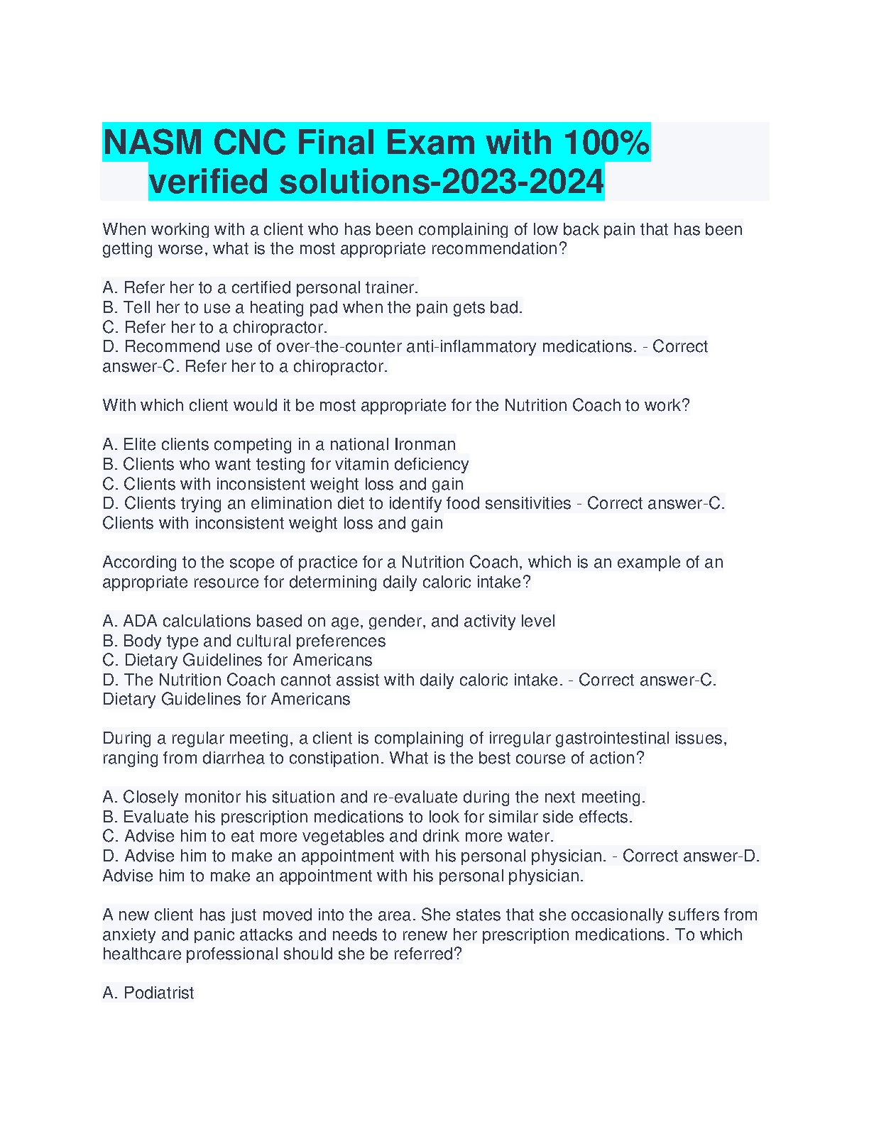 NASM CNC Final Exam with 100% Verified Solutions 2023/2024. DOWNLOAD on www.hackedexams.com INSTANTLY.