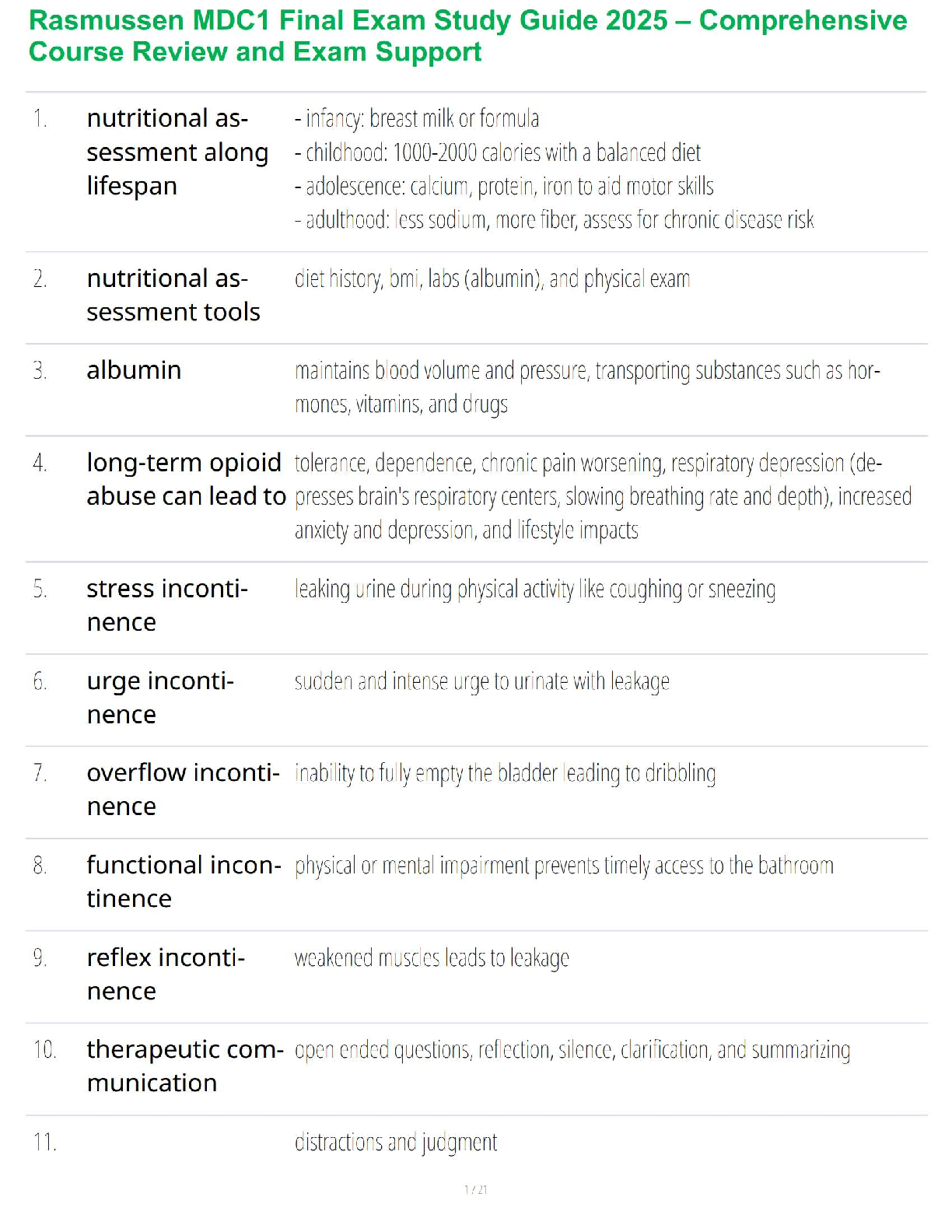 Struggling with the Rasmussen MDC1 final exam? Our brand new, comprehensive study guide for the 2025-2026 academic year is meticulously designed to ensure you pass on your very first try and avoid the stress of resits. This guide breaks down all critical topics into easy-to-digest notes, covering key areas such as nutritional assessment, lab values, opioid abuse effects, types of incontinence, therapeutic communication, and more. Walk into your final exam with confidence and secure the A-grade you deserve. Download now and start preparing for success!