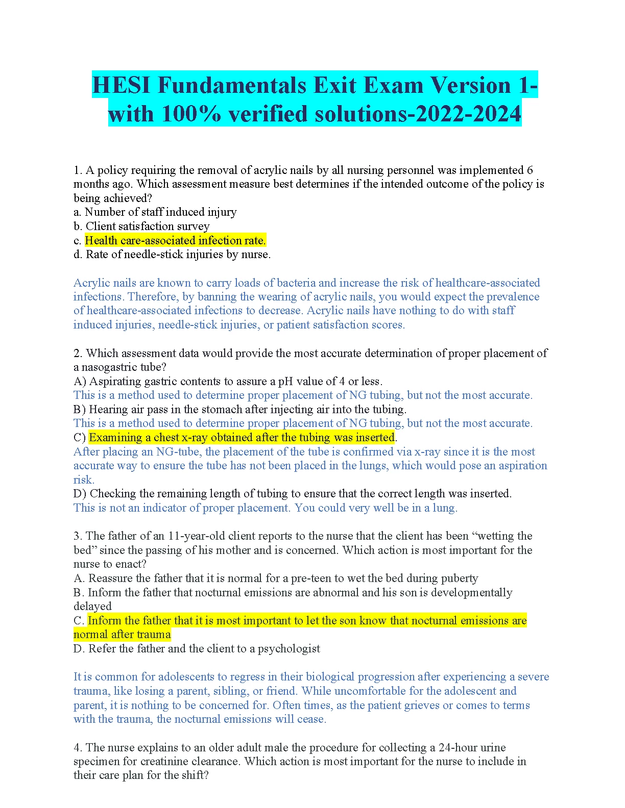 HESI Fundamentals Exit Exam Version 1. MOST RECENT WITH 100% SOLUTIONS