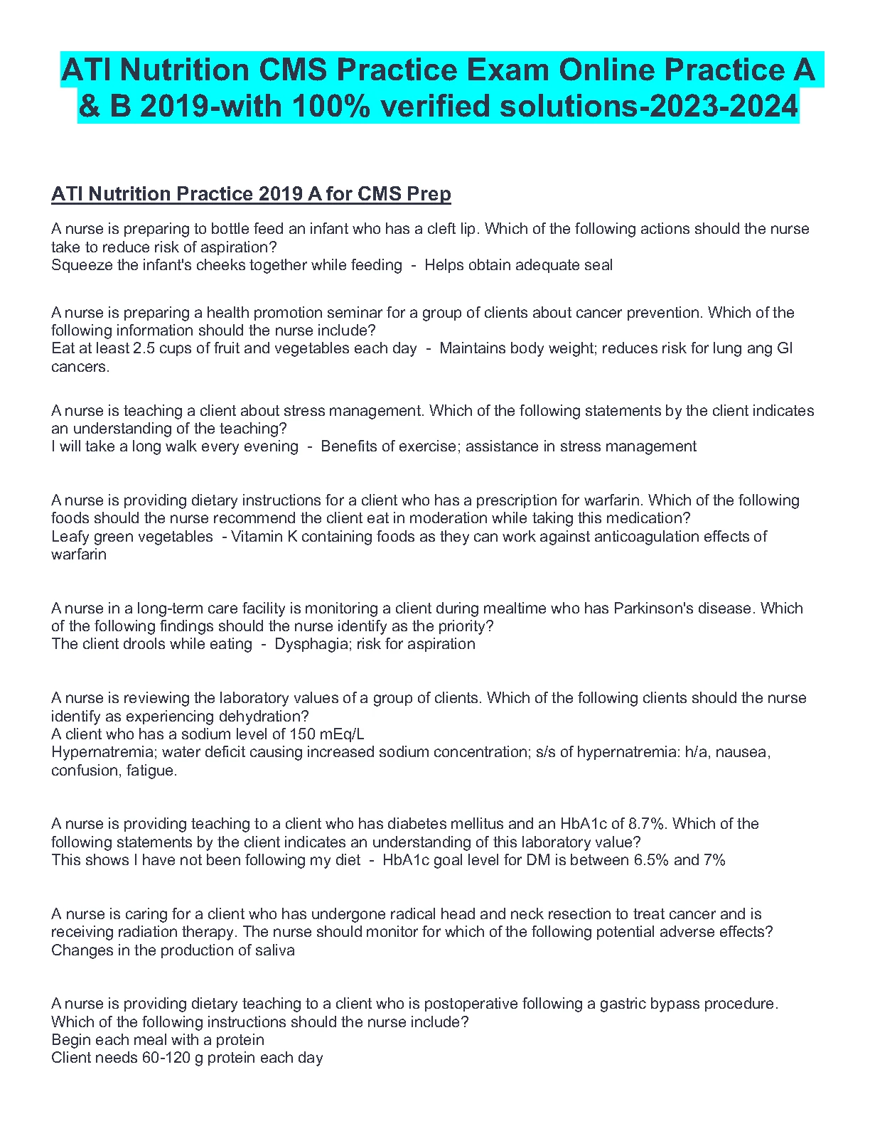 ATI Nutrition CMS Practice Exam Online Practice A & B. BRAND NEW 2023!!!. DOWNLOAD on www.hackedexams.com INSTANTLY.