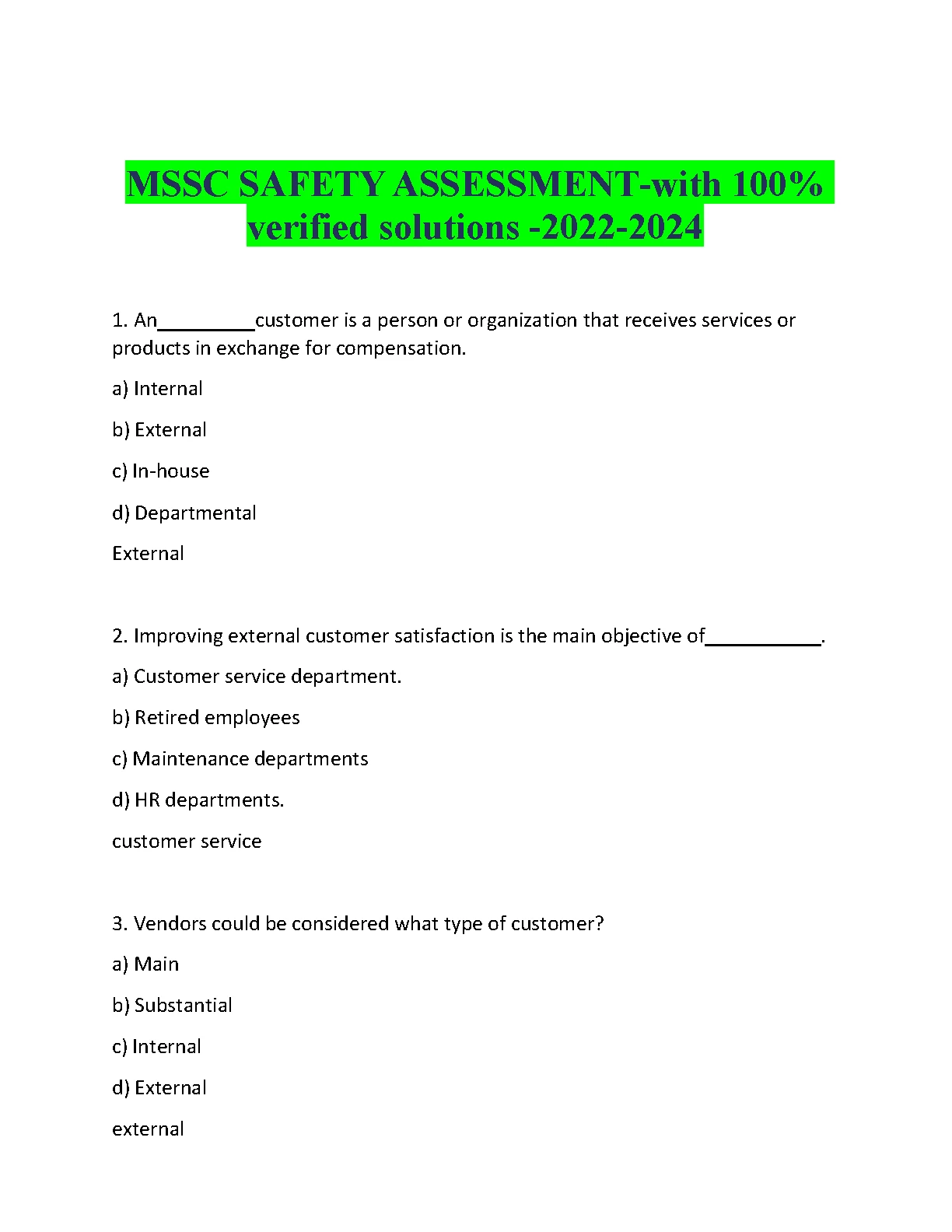 MSSC SAFETY ASSESSMENT. QUESTIONS WITH 100% VERIFIED ANSWERS 2023/2024. DOWNLOAD on www.hackedexams.com INSTANTLY.