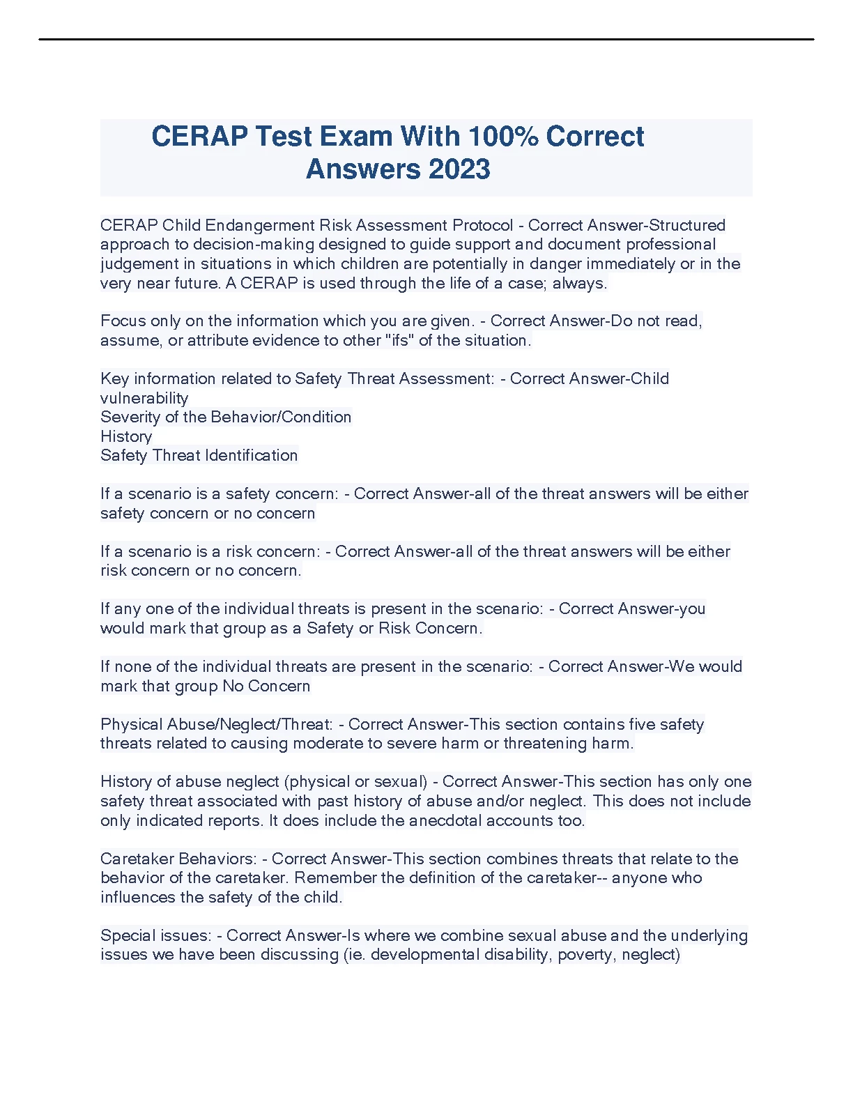 CERAP TEST EXAM. QUESTIONS WITH 100% VERIFIED ANSWERS 2023/2024. DOWNLOAD on www.hackedexams.com INSTANTLY.