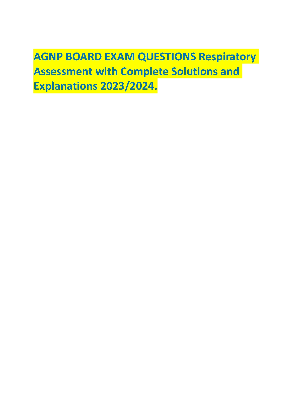 AGNP BOARD EXAM QUESTIONS Respiratory Assessment with Complete Solutions and Explanations 2023/2024.. DOWNLOAD on www.hackedexams.com INSTANTLY.