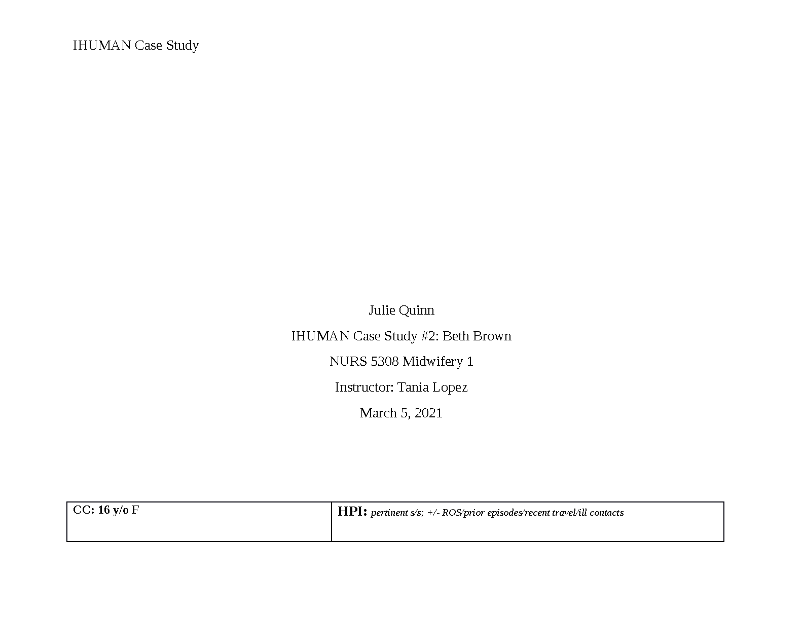 Julie Quinn IHUMAN Case Study #2: Beth Brown NURS 5308 Midwifery 1. LATEST UPDATED VERSION 2023