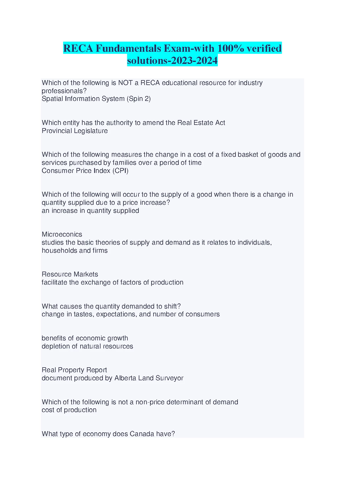 RECA Fundamentals Exam. Questions with 100% Verified Solutions 2023/2024. DOWNLOAD on www.hackedexams.com INSTANTLY.