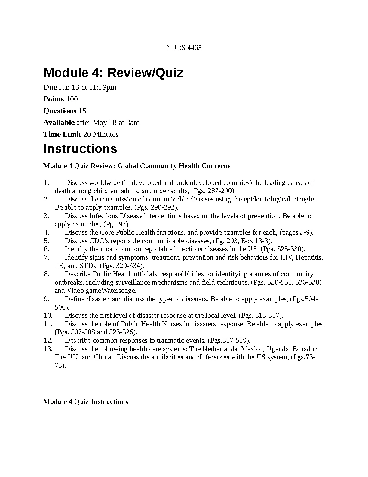 NURS 4465 Module 4 Quiz Review: Global Community Health Concerns 2023/2024