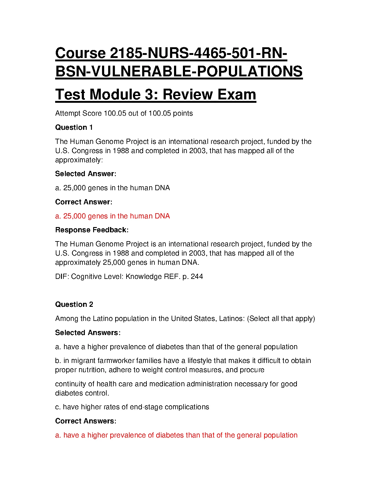 Course 2185 NURS 4465 (501 RNBSN) VULNERABLE-POPULATIONS Test Module 3: Review Exam 2023. DOWNLOAD on www.Hachedexams.com INSTANTLY.
