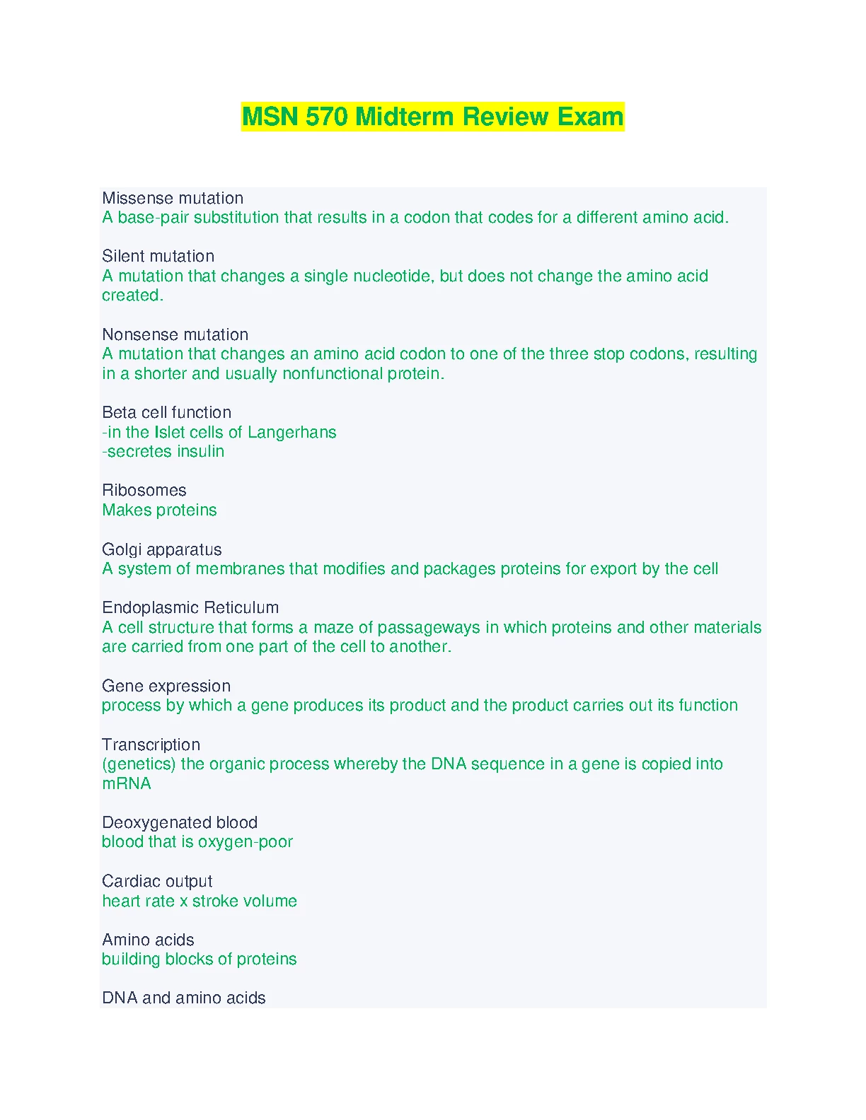 MSN 570 Midterm Review Exam. QUESTIONS WITH 100% VERIFIED SOLUTIONS 2023. DOWNLOAD on www.Hackedexams.com INSTANTLY.