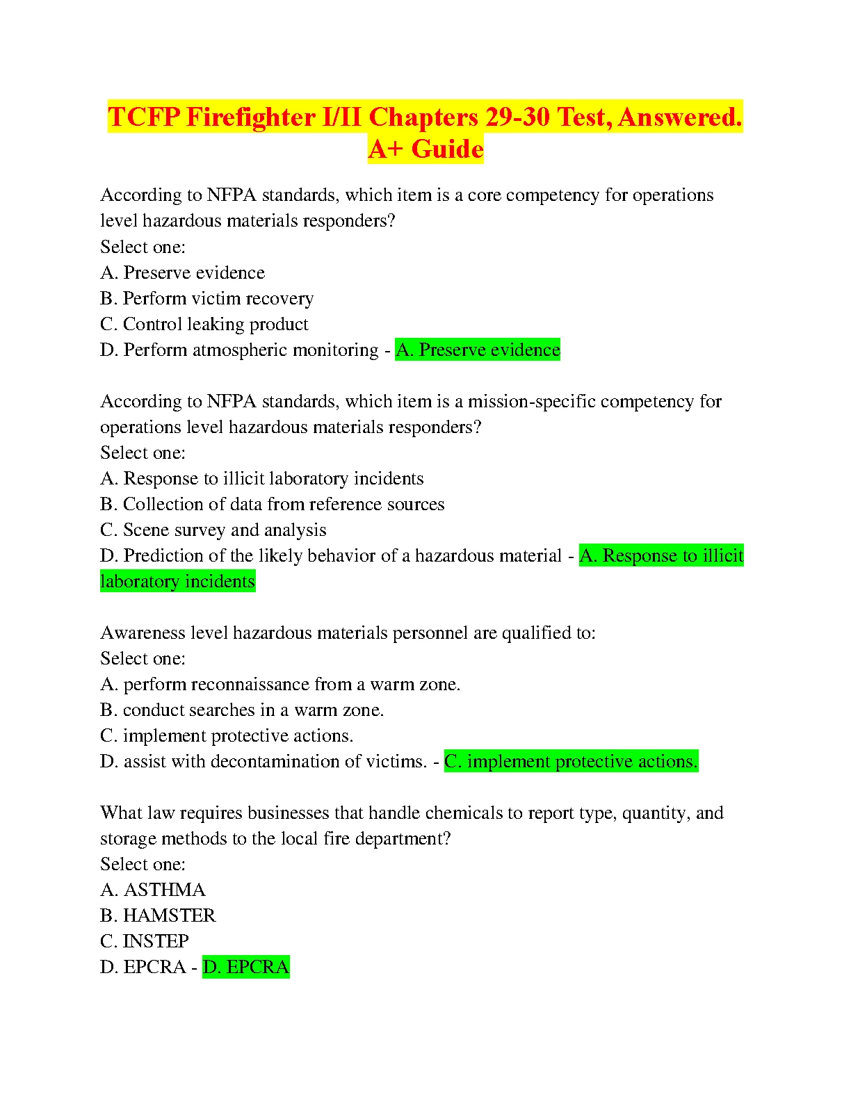 TCFP Firefighter I/II (Chapters 29-30) Test. MOST RELIABLE FOR BEST GRADES 2023. DOWNLOAD on www.Hackedexams.com INSTANTLY.