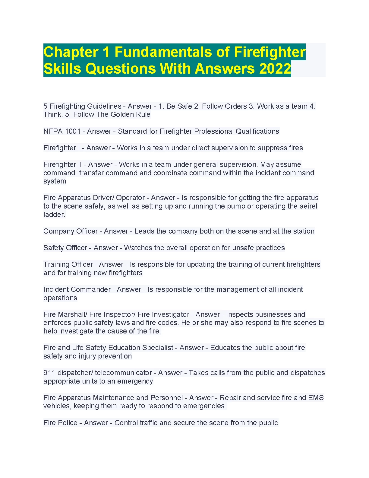 Firefighter Chapter 1 Fundamentals of Skills Questions With Answers 2022/2023. DOWNLOAD on www.Hackedexams.com INSTANTLY.