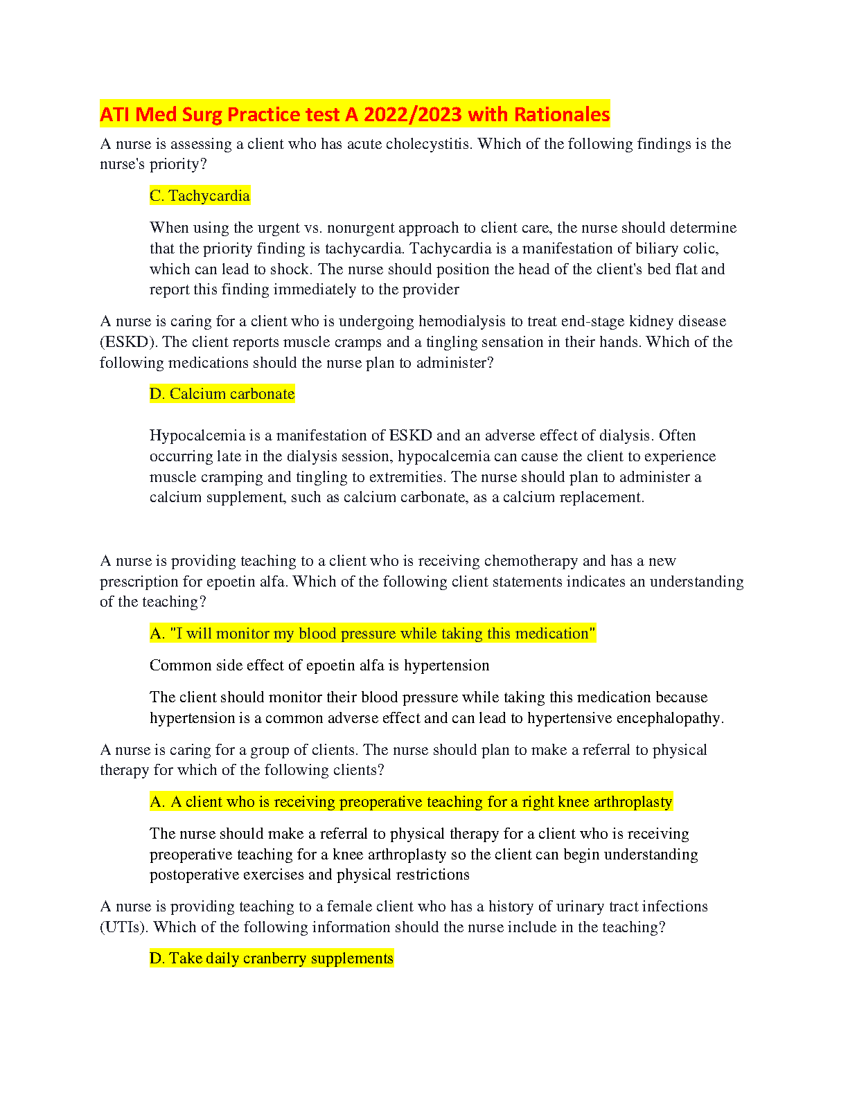 ATI Med Surg Practice test A 2022/2023 with Rationales. DOWNLOAD INSTANTLY on www.hackedexams.com INSTANTLY
