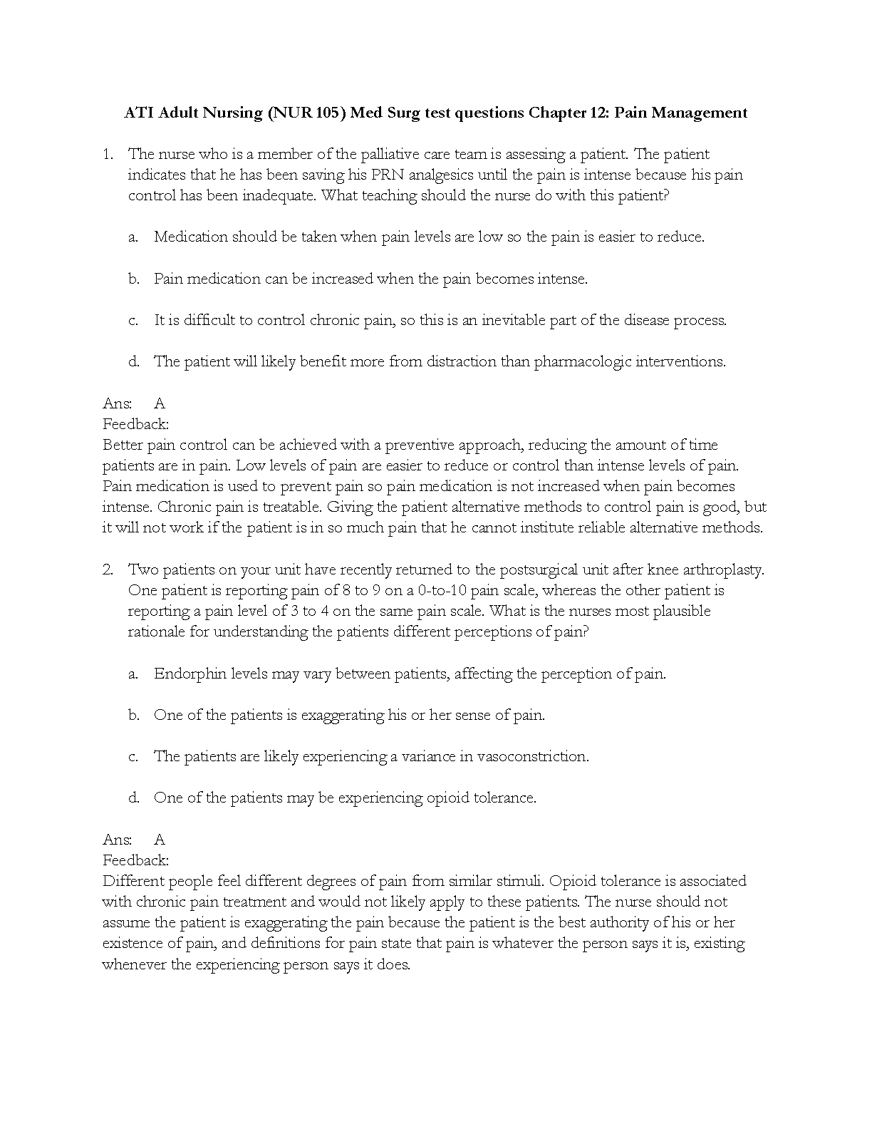 ATI Adult Nursing (NUR 105) Med Surg test questions Chapter 12: Pain Management 2023/2024. DOWNLOAD ON www.Hackedexams.com Instantly.