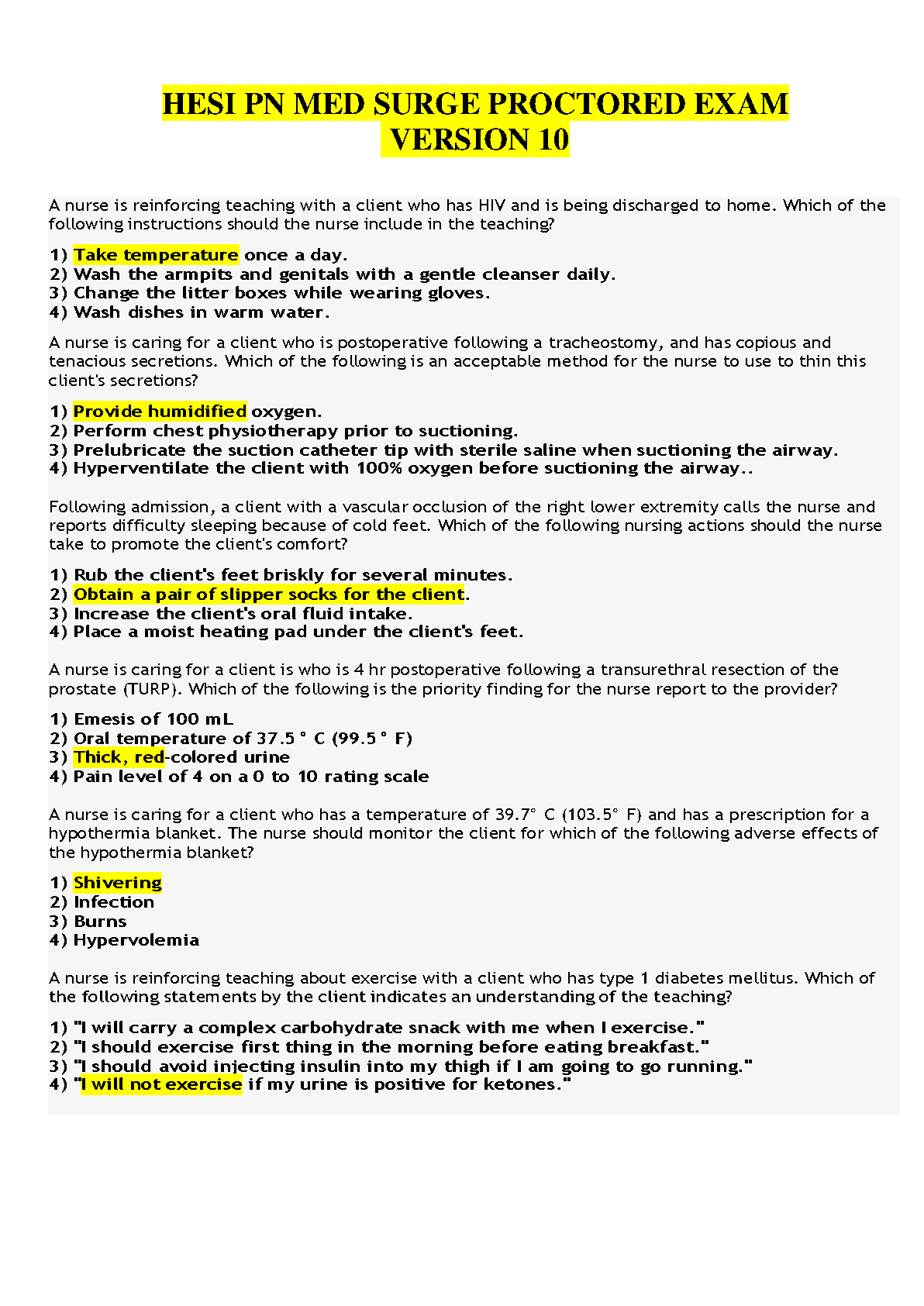 HESI PN MED SURGE PROCTORED EXAM VERSION 10 LATEST SOLUTION 2023