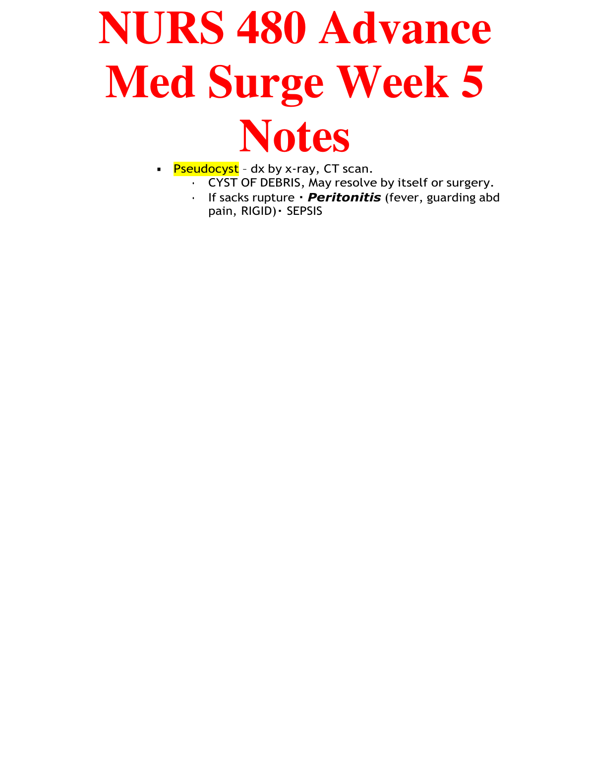 NURS 480 Advance Med Surge Week 5 Notes Latest Updated Version 2023/2024