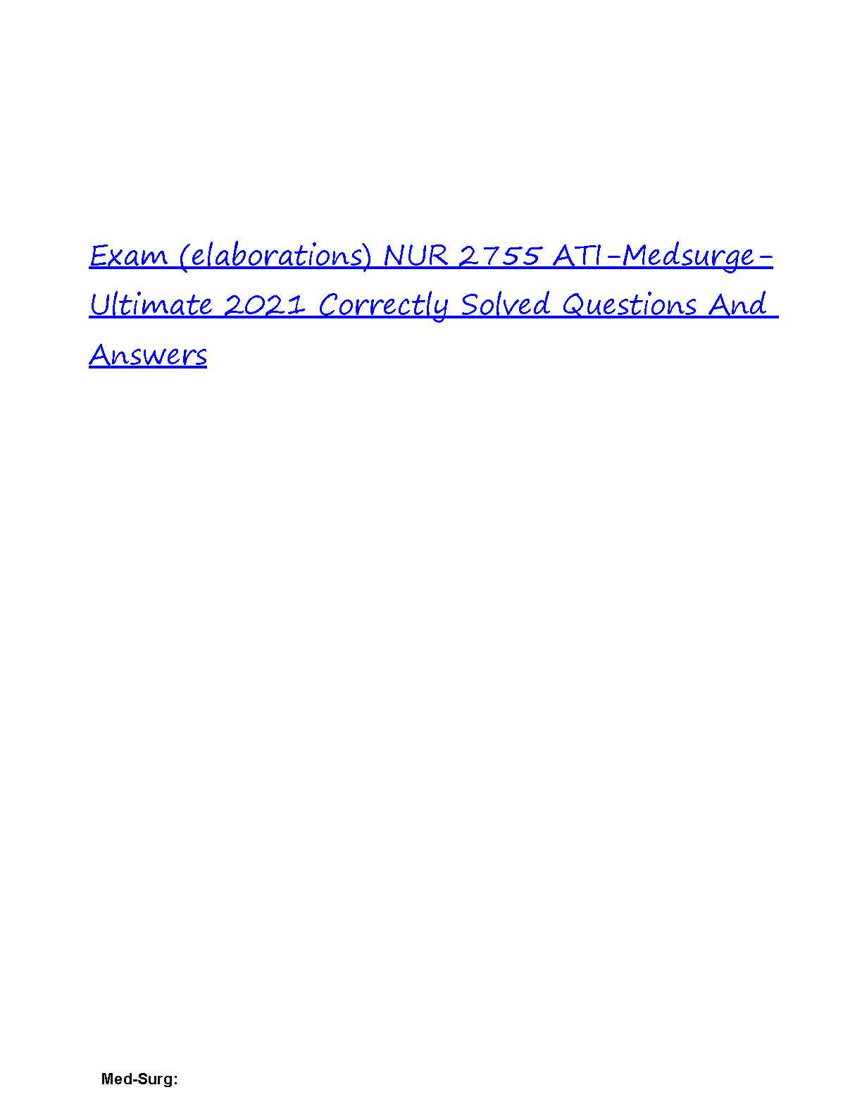 NUR 2755 ATI Medsurge Ultimate 2023 Correctly Solved Questions And Answers 2023