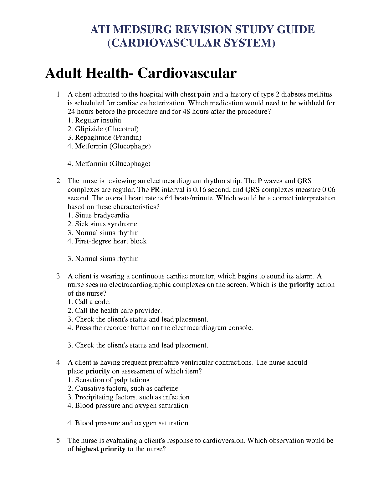 ATI MEDSURG REVISION STUDY GUIDE QUESTION AND ANSWERS (CARDIOVASCULAR SYSTEM) 2023/2024. DOWNLOAD ON www.Hackedexams.com INSTANTLY.