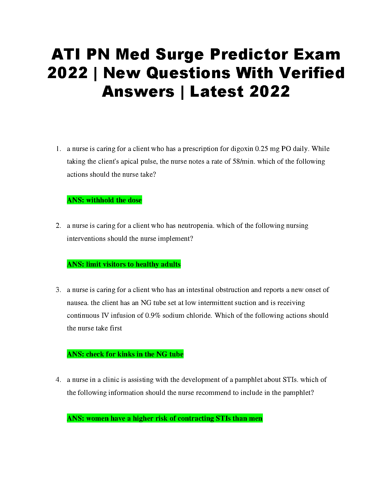 ATI PN Med Surge Predictor Exam Questions With Verified Answers Latest Updated Version 2023. DOWNLOAD ON www.Hackedexams.com INSTANTLY.